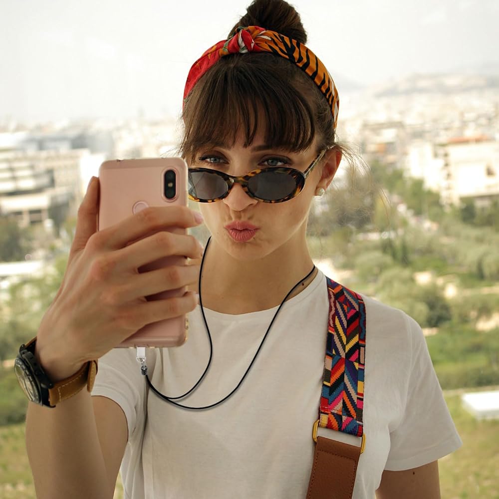 حجم المنتج: يبلغ مقاس كل رقعة حبل هاتف حوالي 5.5 × 3.8 سم / 2.17 × 1.5 بوصة، وحجم مناسب وسمك رفيع لمعظم الهواتف الذكية وحافظات الهواتف ذات فتحة الشحن. يرجى التحقق من المقاس بعناية قبل الشراء.