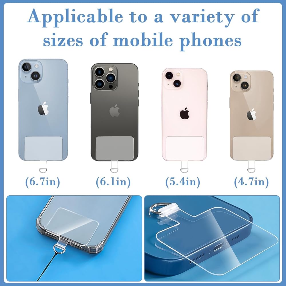 محتوى العبوة: 8 قطع من رقعة حبل الهاتف الخلوي البلاستيكية مع حلقات معدنية، ملصقات حبل للهاتف الخلوي بيضاء وشفافة يبلغ مقاسها تقريبًا 2 × 1.25 بوصة، تناسب معظم الهواتف المحمولة، وتمنع هاتفك من السقوط.