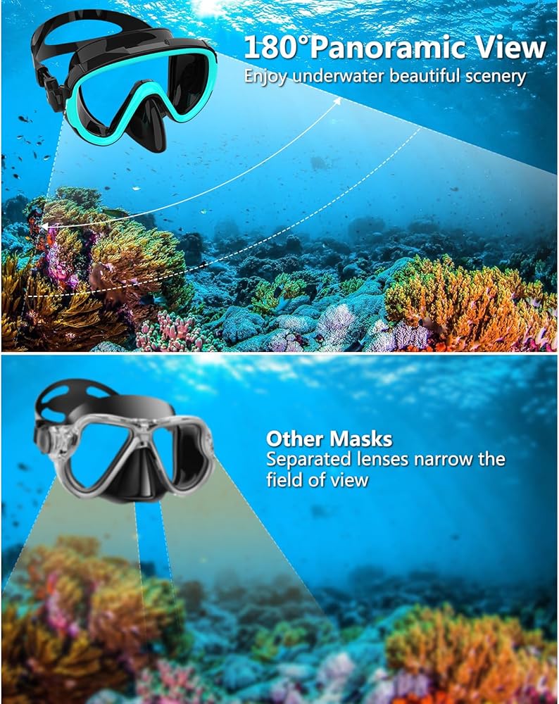 • 【زيادة عرض الرؤية بنسبة 25%】تزيد المرآة الزجاجية المقواة ذات المساحة الكبيرة، عالية الوضوح، من عرض الرؤية بنسبة 25%، مما يوفر تجربة بصرية أكثر مثالية تحت الماء.