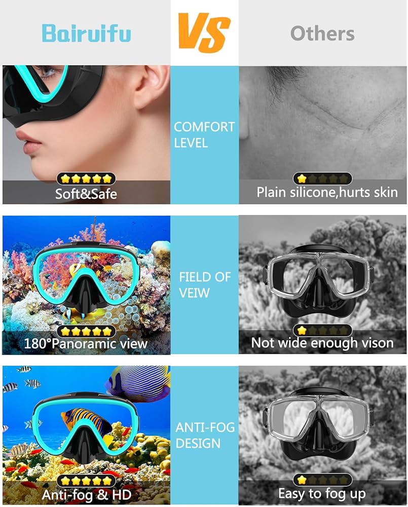 【زيادة عرض الرؤية بنسبة 25%】تزيد المرآة الزجاجية المقواة ذات المساحة الكبيرة، عالية الوضوح، من عرض الرؤية بنسبة 25%، مما يوفر تجربة بصرية أكثر مثالية تحت الماء.