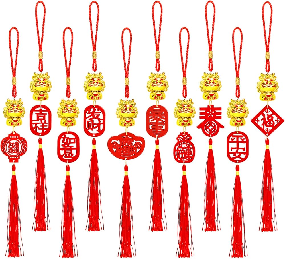 10 قطع 2024 سنة التنين الصينية سحر الحظ عقدة صينية محظوظة معلقة المعلقات الشرقية سحر الحظ السعيد السنة الصينية الجديدة فنغ شوي ديكور لنجاح الثروة والثروة