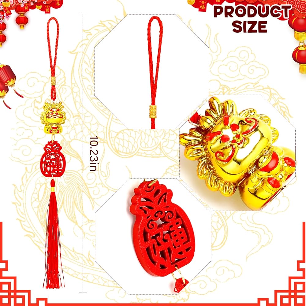 • تطبيق واسع: يمكن تعليق سحر عام التنين الصيني الجديد على الباب أو الغرفة أو المكتب أو المنزل أو السيارة، وهو هدية جيدة لحفلة عيد الربيع، ولكن أيضًا لنفسك وعائلتك وأصدقائك، مما يضيف جوًا احتفاليًا ممتعًا.
