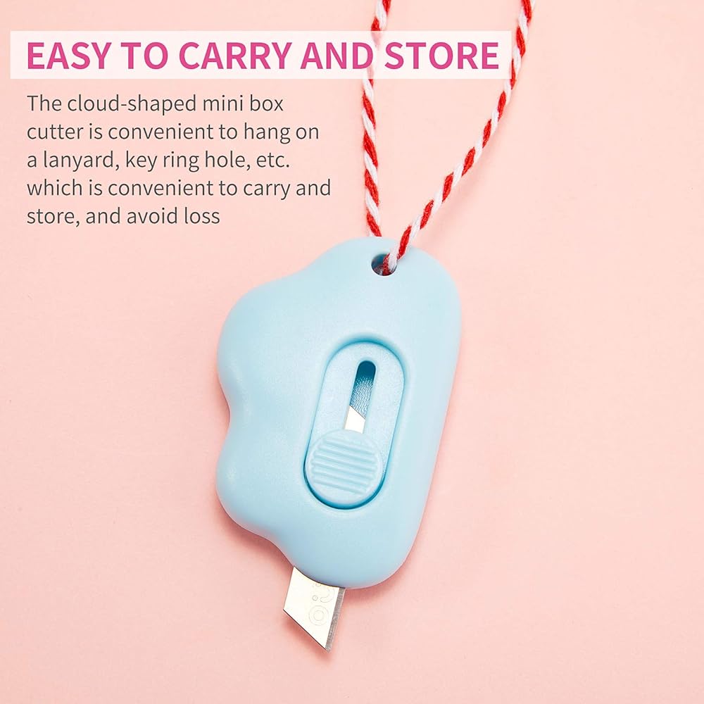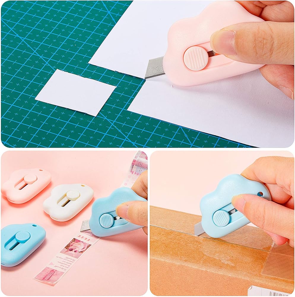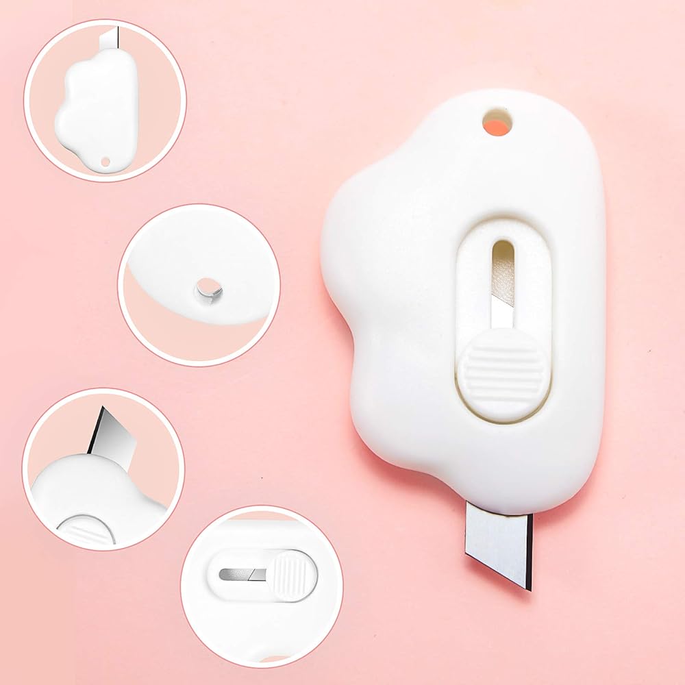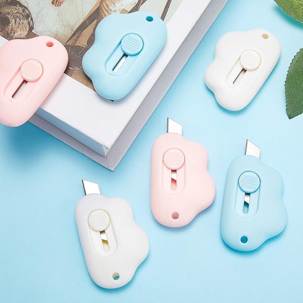 15 قطعة من سكاكين صغيرة متعددة الاستخدامات، قاطعة صندوق ملون قابل للسحب، فتاحة رسائل سحابية، مظروف سحابي، فتاحة كرتونية محمولة لطيفة (وردي، أزرق، أبيض)