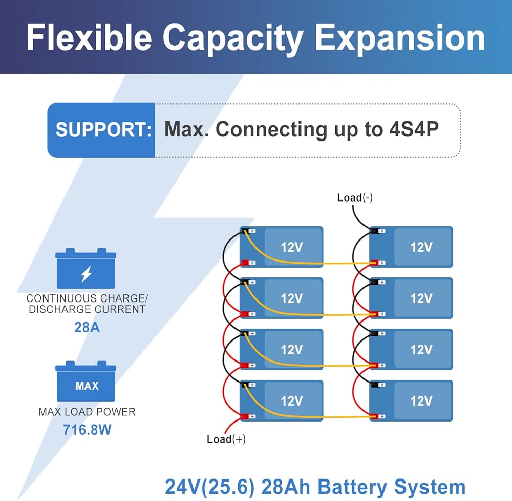 تقنية حديد الليثيوم المتقدمة: بطارية ليثيوم 7 أمبير مصنوعة بواسطة خلايا LiFePO4 من فئة السيارات مع كثافة طاقة أعلى وأداء أكثر استقرارًا وقوة أكبر. أداء دورة ممتاز، شحن وتفريغ سريع، كفاءة شحن تصل إلى 100%، وطاقة إخراج عالية. بدون تأثير الذاكرة، بغض النظر عن حالة البطارية، يمكن استخدامها بمجرد شحنها. دعم توسيع البطارية لمدة تصل إلى 4 سلسلة و 4 متوازية ومناسبة لتخزين الطاقة الكهربائية.
