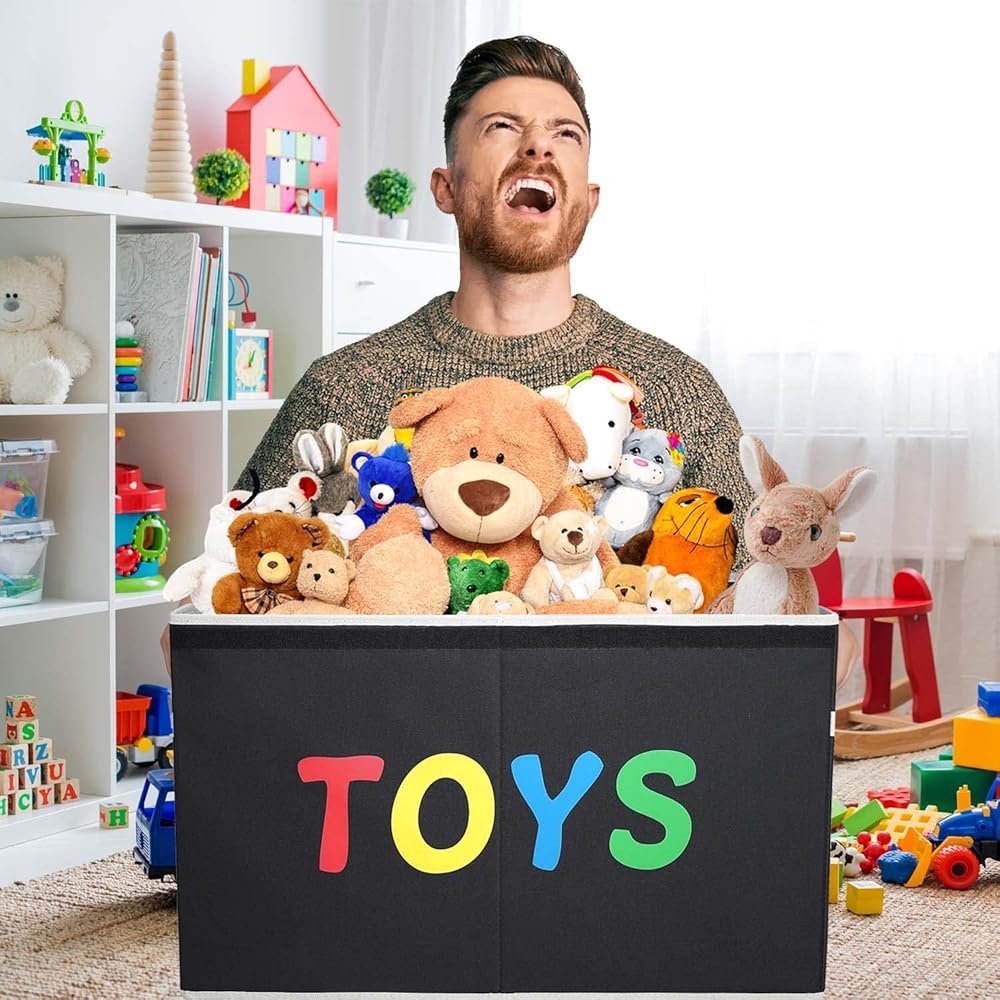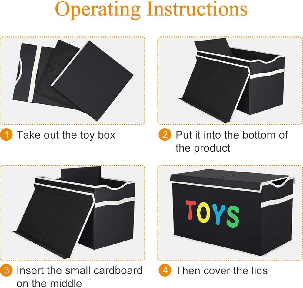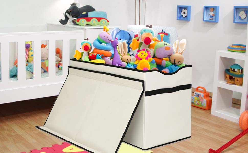 حاويات تخزين كبيرة جدًا: يبلغ مقاس صناديق التخزين للألعاب حوالي 26.8 × 13.8 × 16 بوصة (الطول × العرض × الارتفاع)، وهي كبيرة بما يكفي لتخزين ألعاب الفتيات والأولاد لحمل الحيوانات المحشوة والبقالة والملابس والكتب وجميع الأشياء تقريبًا. ألعاب الأطفال.