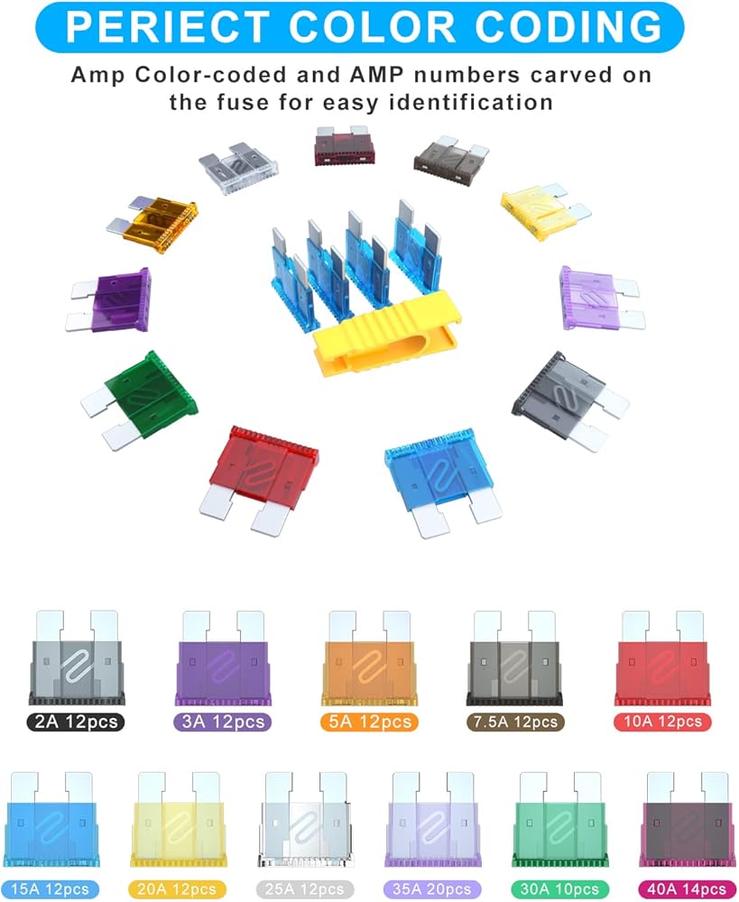 • 【قيمة رائعة】 تتضمن مجموعة متنوعة من الصمامات القياسية هذه 140 قطعة من صمامات الشفرة القياسية، وساحب مصهر وصندوق تخزين.