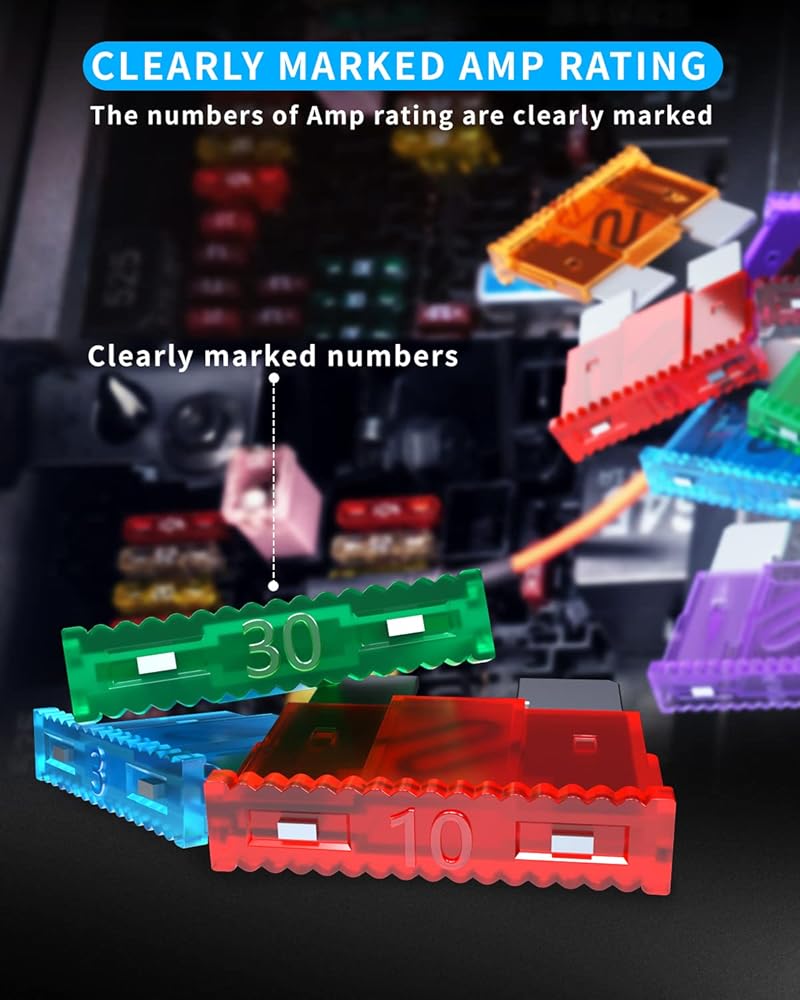 • 【سهولة التعرف: 】مرمزة بالألوان. تتميز الصمامات من كل حجم حالي بألوان مختلفة، ويتم نقش تصنيف AMP في الجزء العلوي من مجموعة متنوعة من الصمامات لسهولة التعرف عليها.
