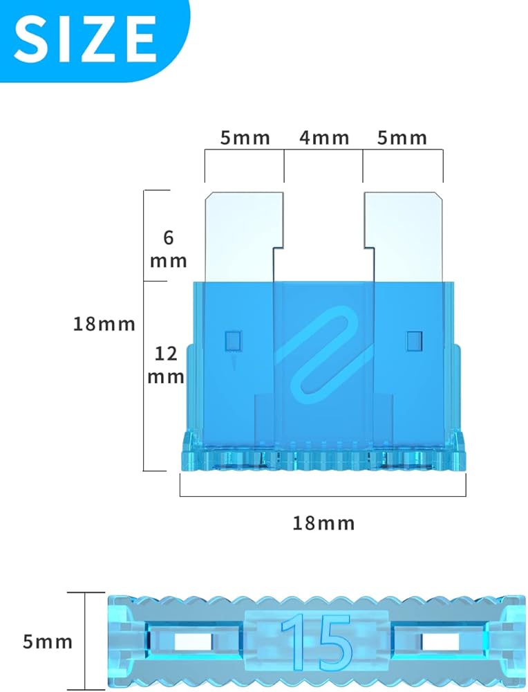 • 【11 الصمامات القياسية للسيارات Rv الأكثر شيوعًا】 الحجم: 0.75 × 0.71 × 0.2 بوصة. تحتوي صمامات السيارات على 11 مواصفات حالية (2A 3A 5A 7.5A 10A 15A 20A 25A 30A 35A 40A.