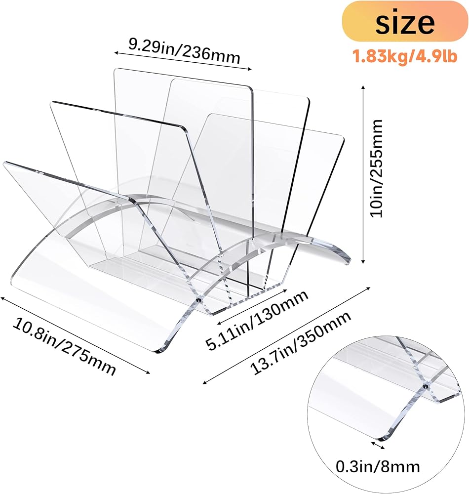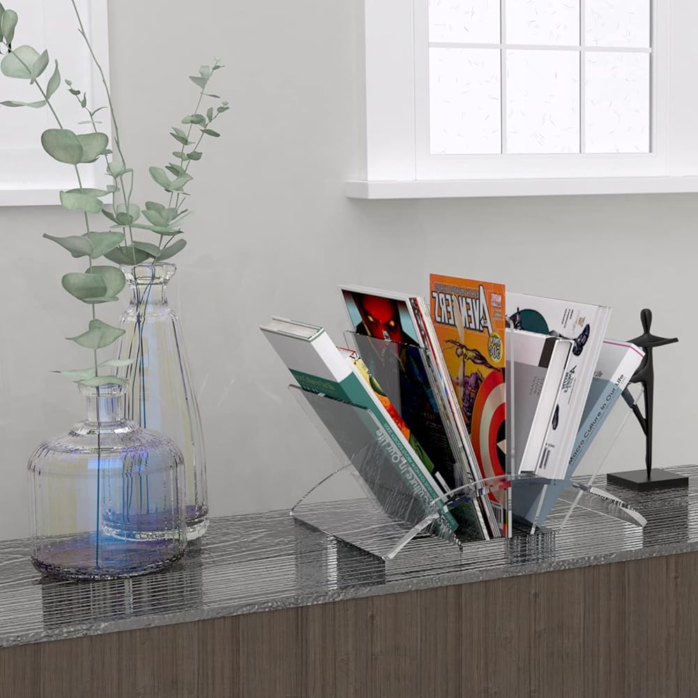 🙌【أكريليك عالي الجودة】حامل المجلات الأكريليك الخاص بنا يجعل من السهل عليك تخزين المجلات وعرضها! مصنوع من مادة أكريليك عالية الجودة، حامل المجلات الشفاف الخاص بنا متين ومقاوم للكسر وموفر للمساحة. يتمتع حامل المجلات المكتبية لدينا بمظهر عصري وأنيق يناسب بسهولة ديكور أي منزل أو مكتب.