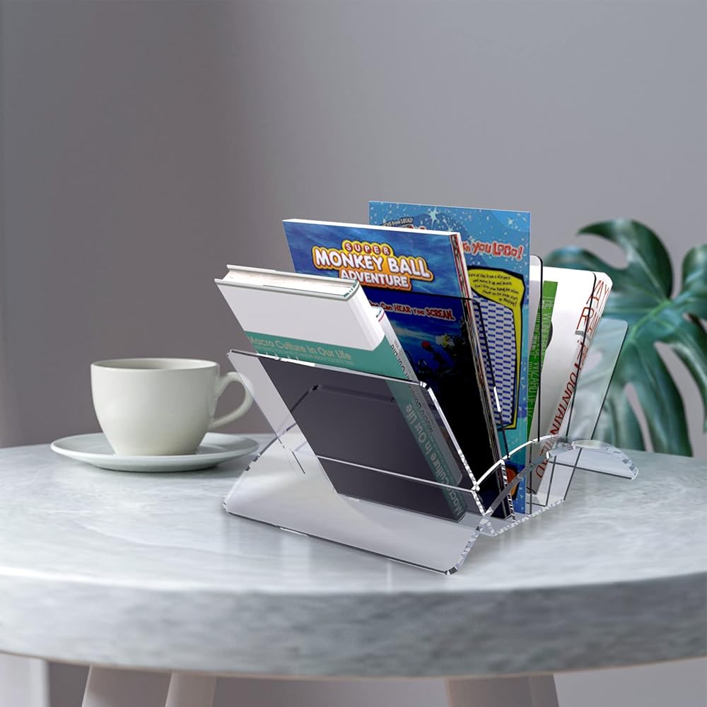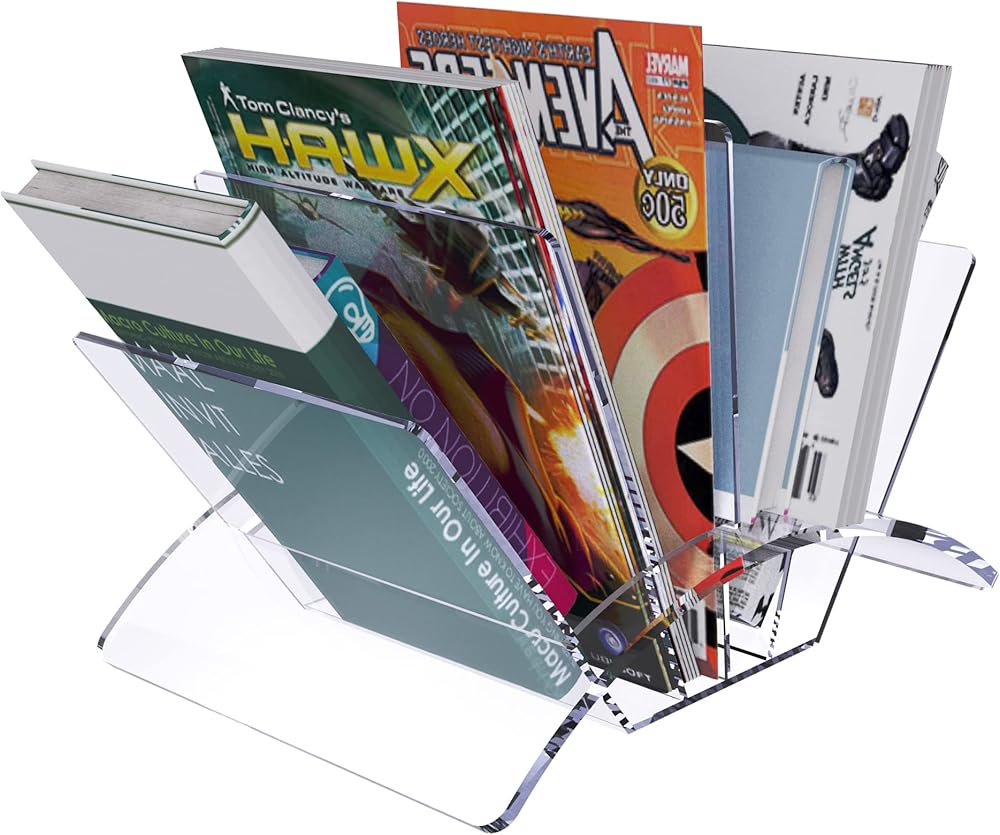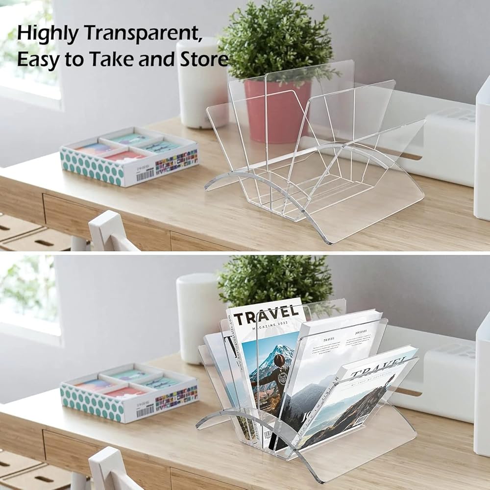 🙌【4 أقسام شفافة】مادة الأكريليك الشفافة تجعل حامل ملفات الأكريليك من السهل رؤية غلاف الكتاب، مما يوفر الوقت في البحث عن الكتاب. رعاية سهلة، تحمي مجلتك من تراكم الرطوبة والأوساخ والغبار.