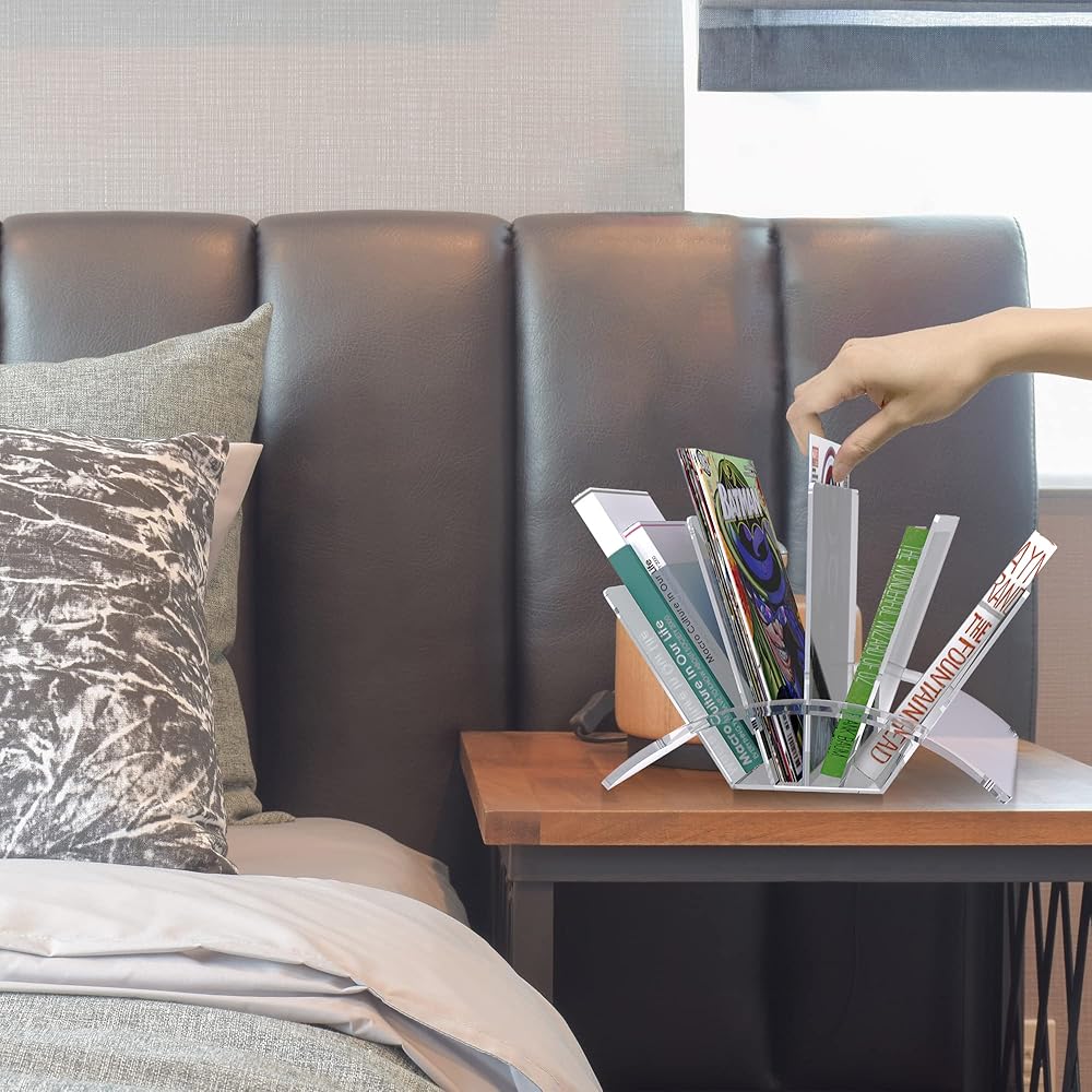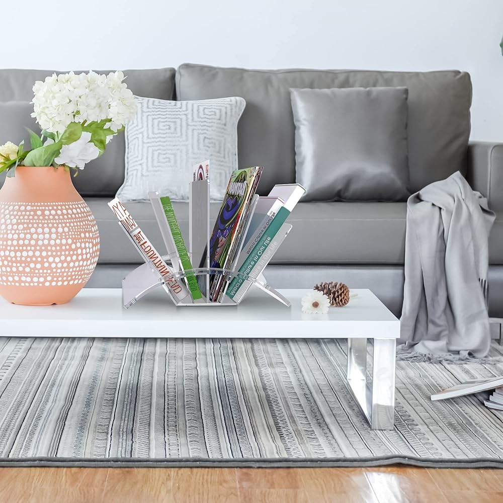 🙌【التقدير البصري】يحافظ التصميم المفتوح مثل البتلة على مجلاتك في وضع مستقيم ويمنعها من الانحناء أو الالتواء. يتم وضع حامل ملفات المجلات على الطاولة مثل بتلات الزهور المتفتحة، والملمس شفاف والخطوط ناعمة، مما يجعل حامل العرض الموجود أعلى الطاولة يبدو راقيًا، وجويًا، وأنيقًا، ومزخرفًا تمامًا.