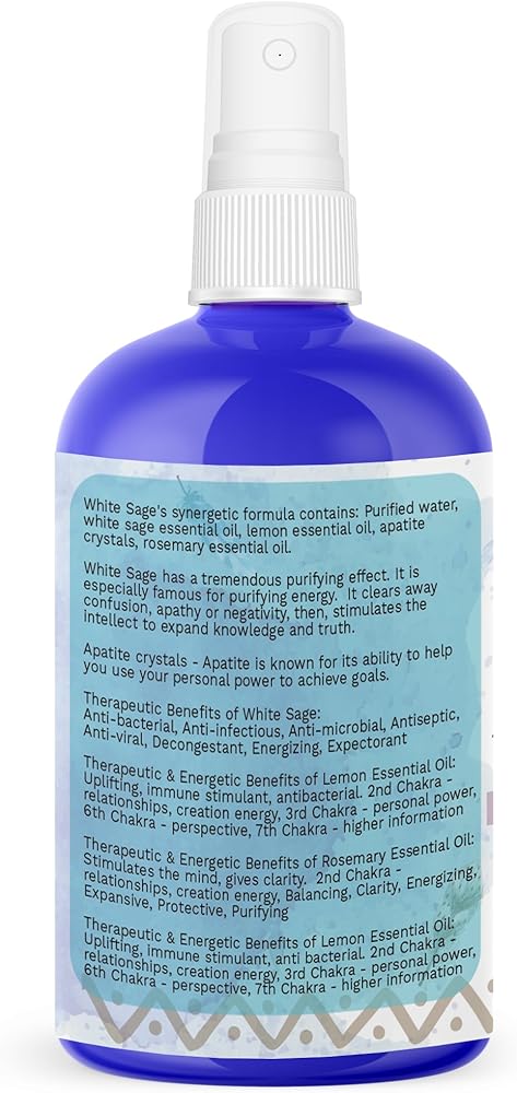 نحن نستخدم زيت المريمية الأبيض العضوي النقي، وبلورات الأباتيت الزرقاء الحقيقية، وغيرها من المكونات القوية لجعل رذاذ المريمية هذا مفيدًا حقًا لك.
