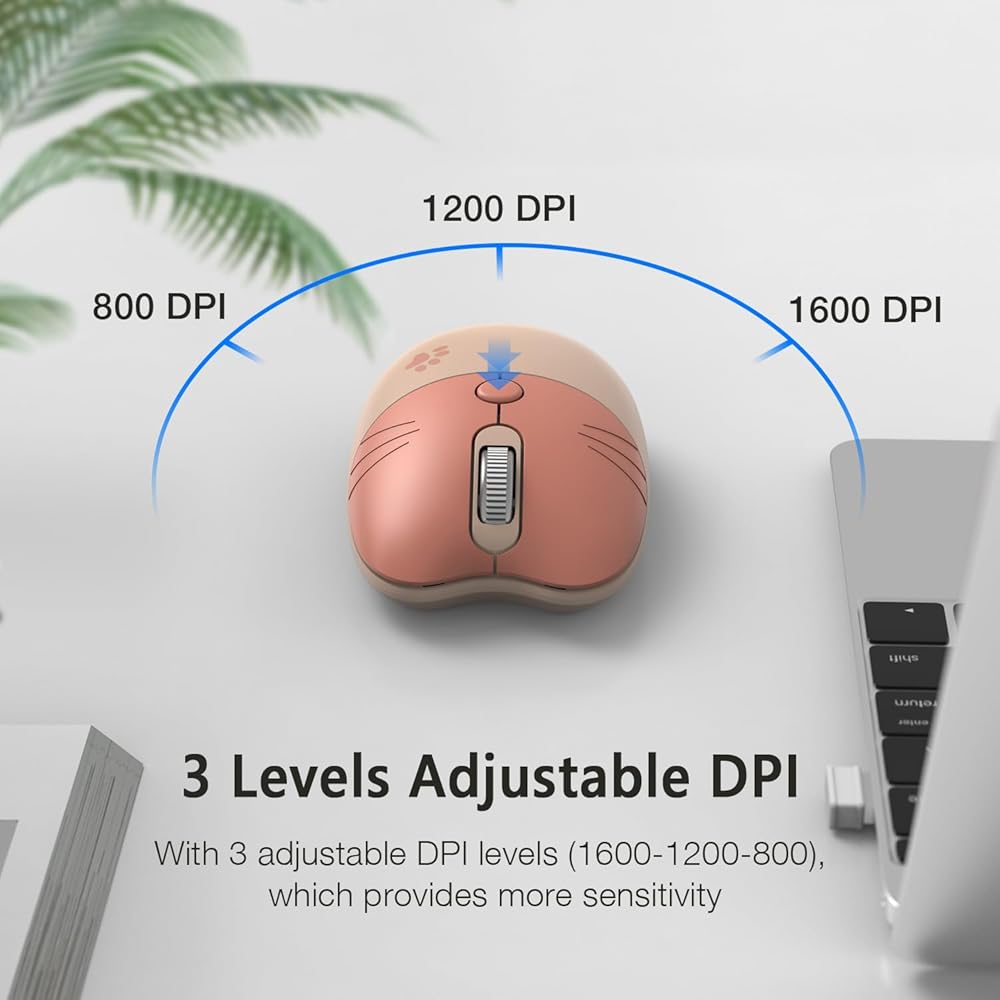 【3 DPI قابلة للتعديل】مفتاح 3 DPI، 800/1200/1600، سهل تغيير سرعة الماوس اللاسلكي بحرية لتلبية الاحتياجات المختلفة، سواء للعمل اليومي أو الألعاب. الإعداد الافتراضي للمصنع هو 1200DPI، اضغط على الزر الأوسط لتبديل DPI انت تحتاج.