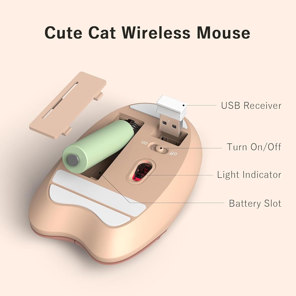 【تصميم لطيف لآذان القطط 】تصميم انسيابي للأذن، الفأر اللاسلكي مريح في الإمساك ويناسب يديك بشكل مثالي، مما يوفر أقصى قدر من الراحة ودعم يدك.