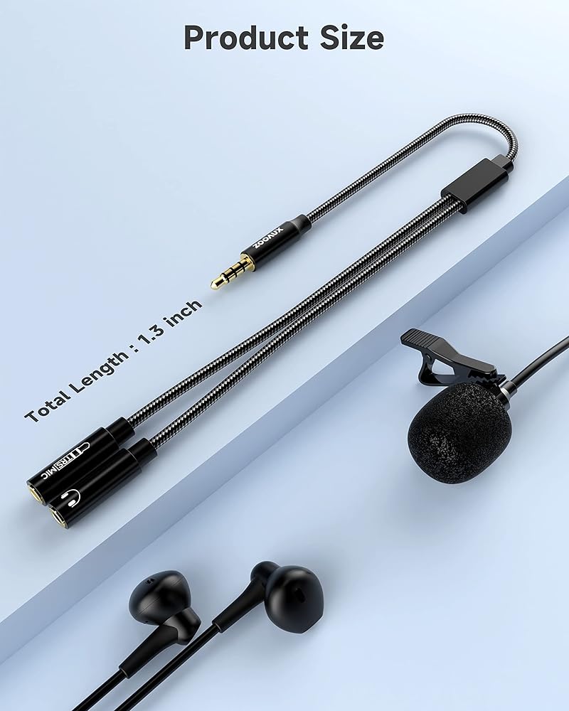 موزع ميكروفون سماعة الرأس من ZOOAUX، وميكروفون ومحول صوت 3.5 مم، وكابل مقبس ستيريو CTIA Y متوافق مع سماعة الألعاب مع مقابس ميكروفون صوت منفصلة (ليس لسماعتين)