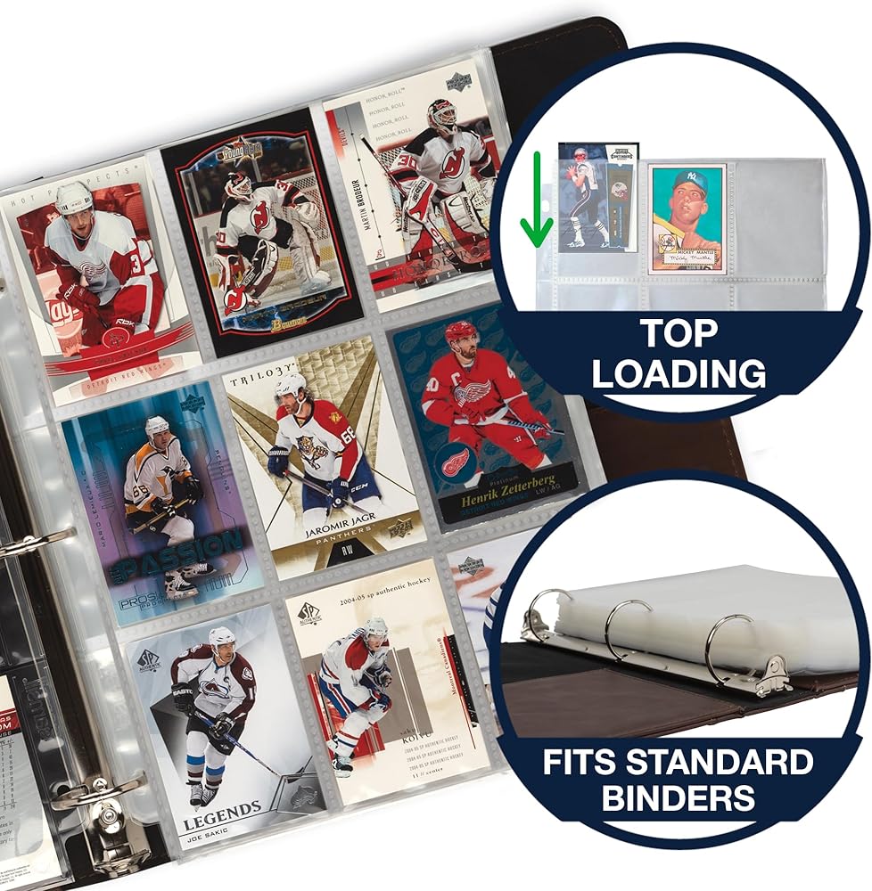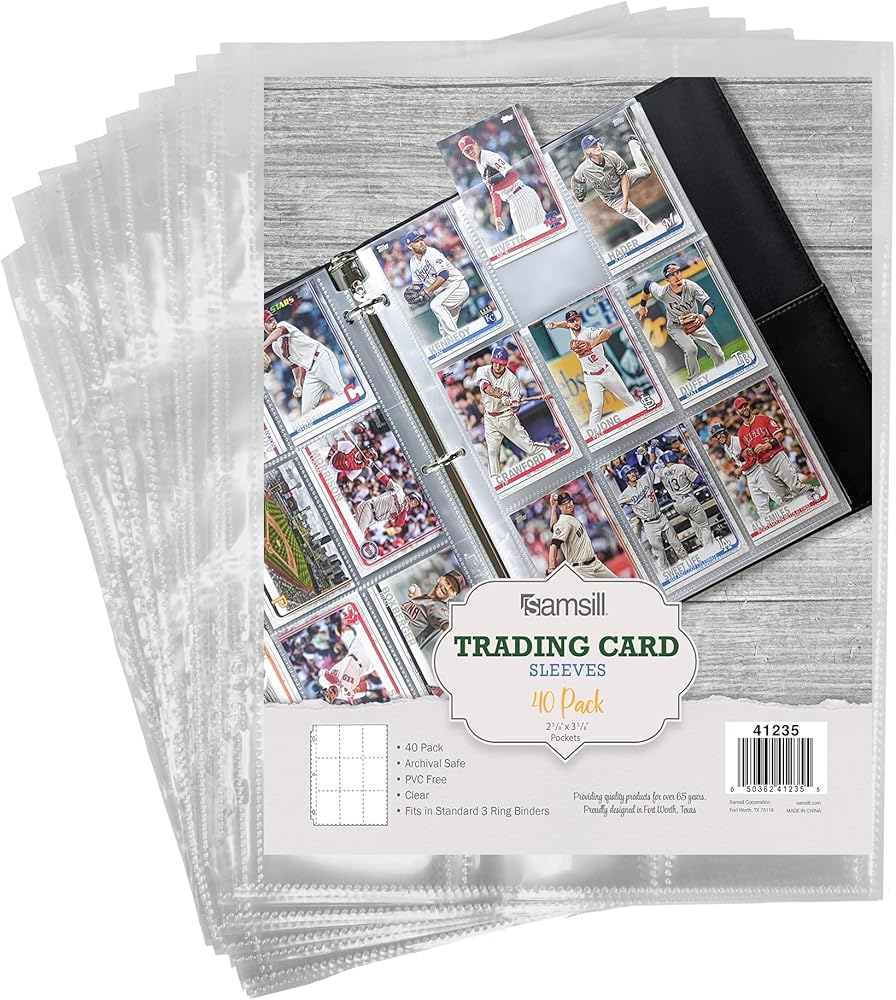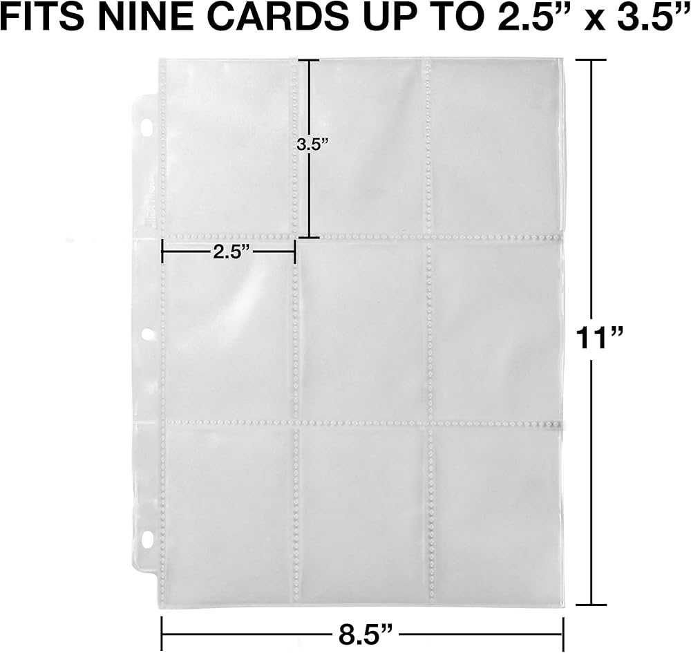 تناسب المجلدات ذات الحجم القياسي: هذه العبوة المكونة من 40 غلافًا من 9 جيوب ستناسب أي مجلد قياسي مكون من 3 حلقات؛ يمكن لكل فتحة أن تناسب بطاقات التداول الرياضية وبطاقات الألعاب وحتى الصور الفردية