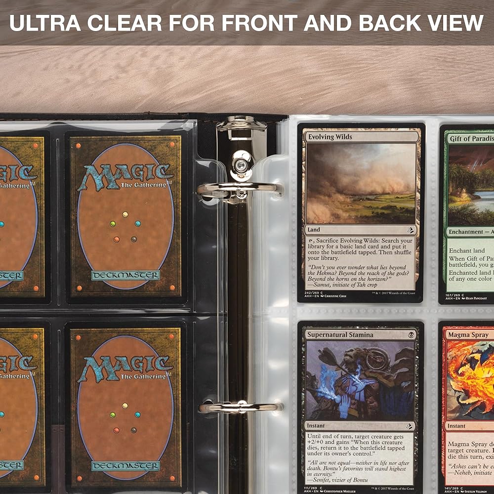 تنظيم مريح: تسمح لك هذه الملاءات الواقية للبطاقات برؤية بطاقاتك من كلا الجانبين أو وضع بطاقتين في كل جيب من الأكمام البلاستيكية. جيوب تحميل علوية لسهولة التخزين