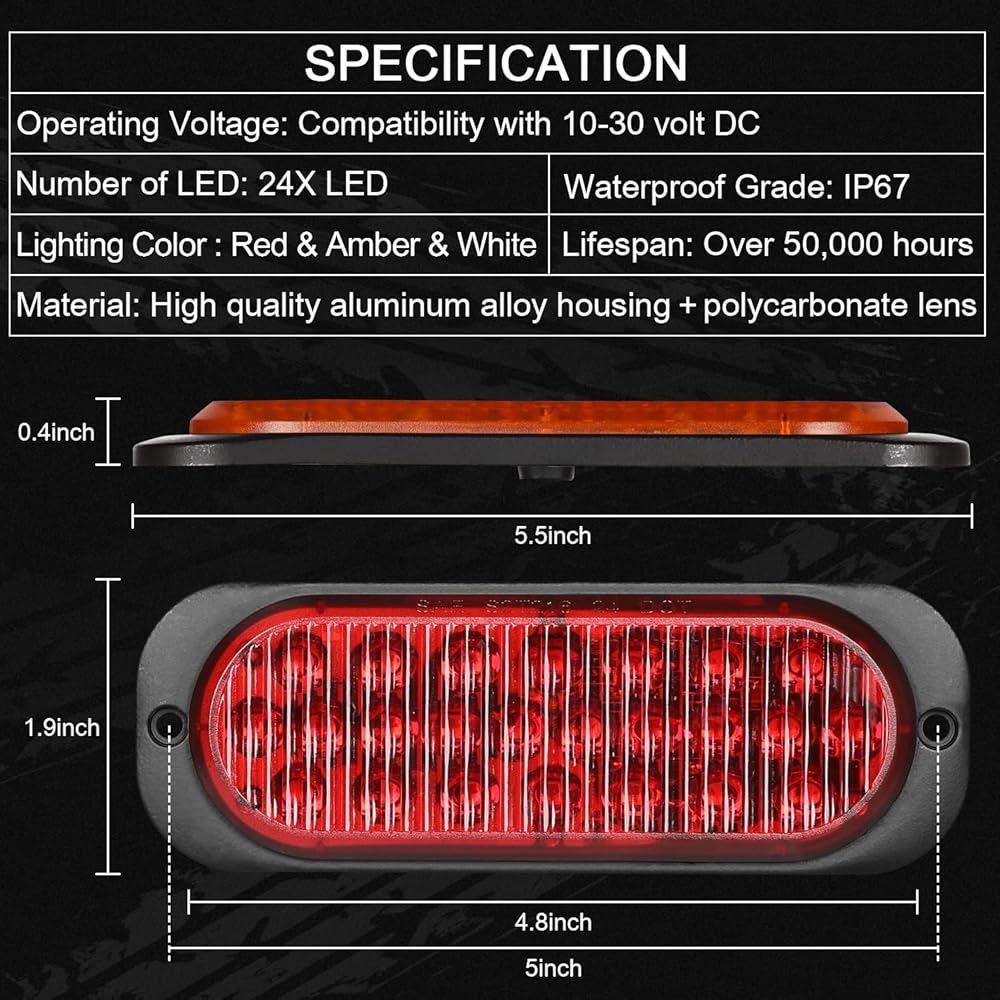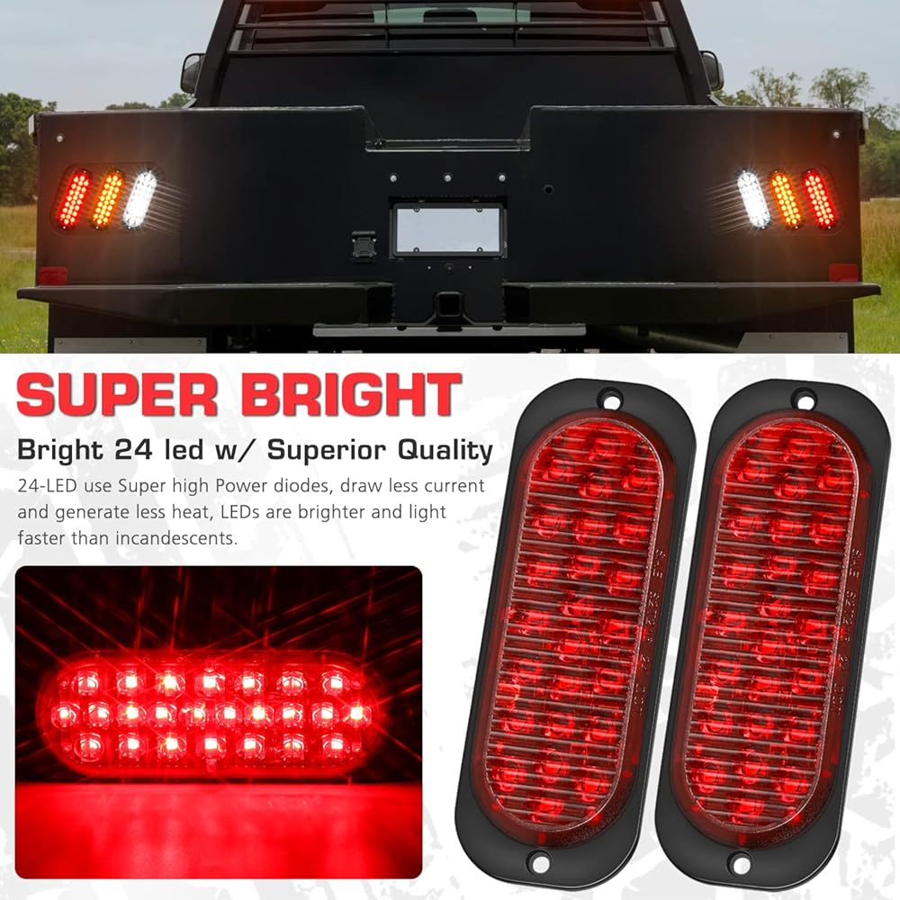 فائقة السطوع: 24 مصباح SMD2835 LED ساطع مع رؤية عالية للغاية، تضيء الجزء الخلفي أو الجانب من سيارتك أو المقطورة في ضوء النهار أو منتصف الليل أو أيام المطر أو الضباب. تحسين أمن محرك الأقراص وتجنب الحوادث.