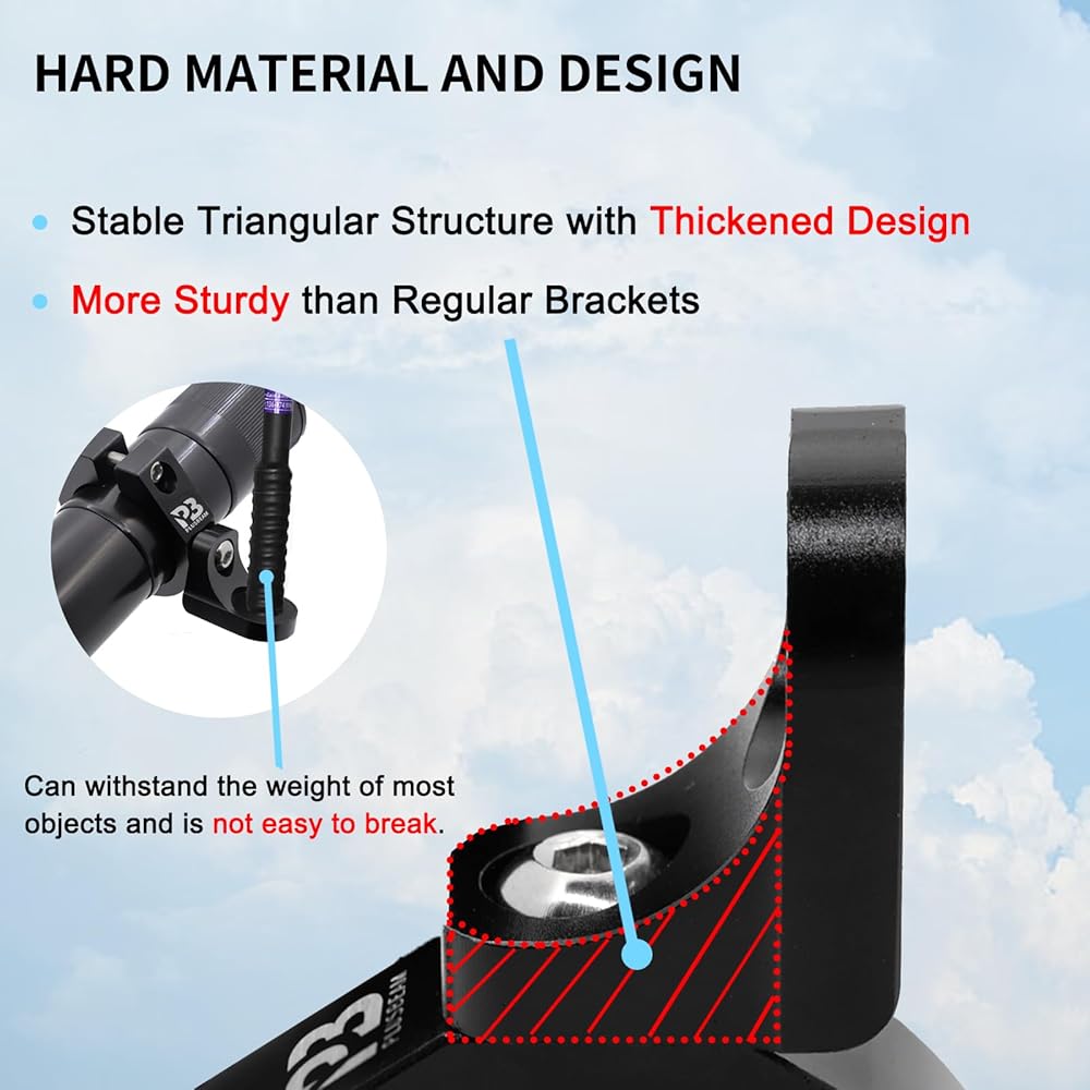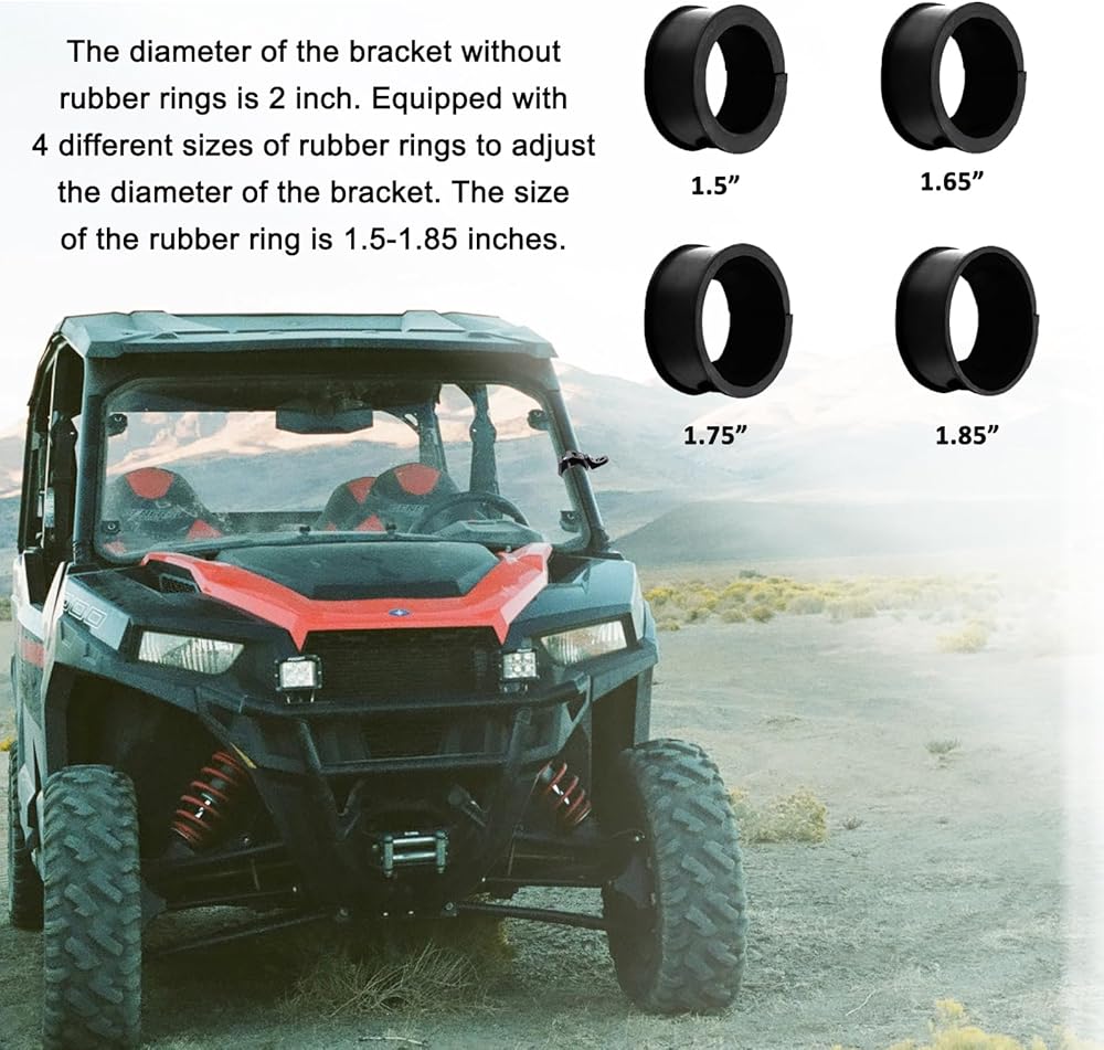 [توافق عالمي] يبلغ قطر دعامة التثبيت على شريط الضوء 1.5 بوصة، 1.65 بوصة، 1.75 بوصة، 1.85 بوصة، 2 بوصة. إنها مناسبة لمركبات ATV وUTV والشاحنات ودراجات الثلج والدراجات النارية والمزيد. طالما أن القطر يتراوح حجم الرافعة بين 1.5 سم و2 سم، ويمكن تركيب هذا الدعامة بسهولة وثبات.