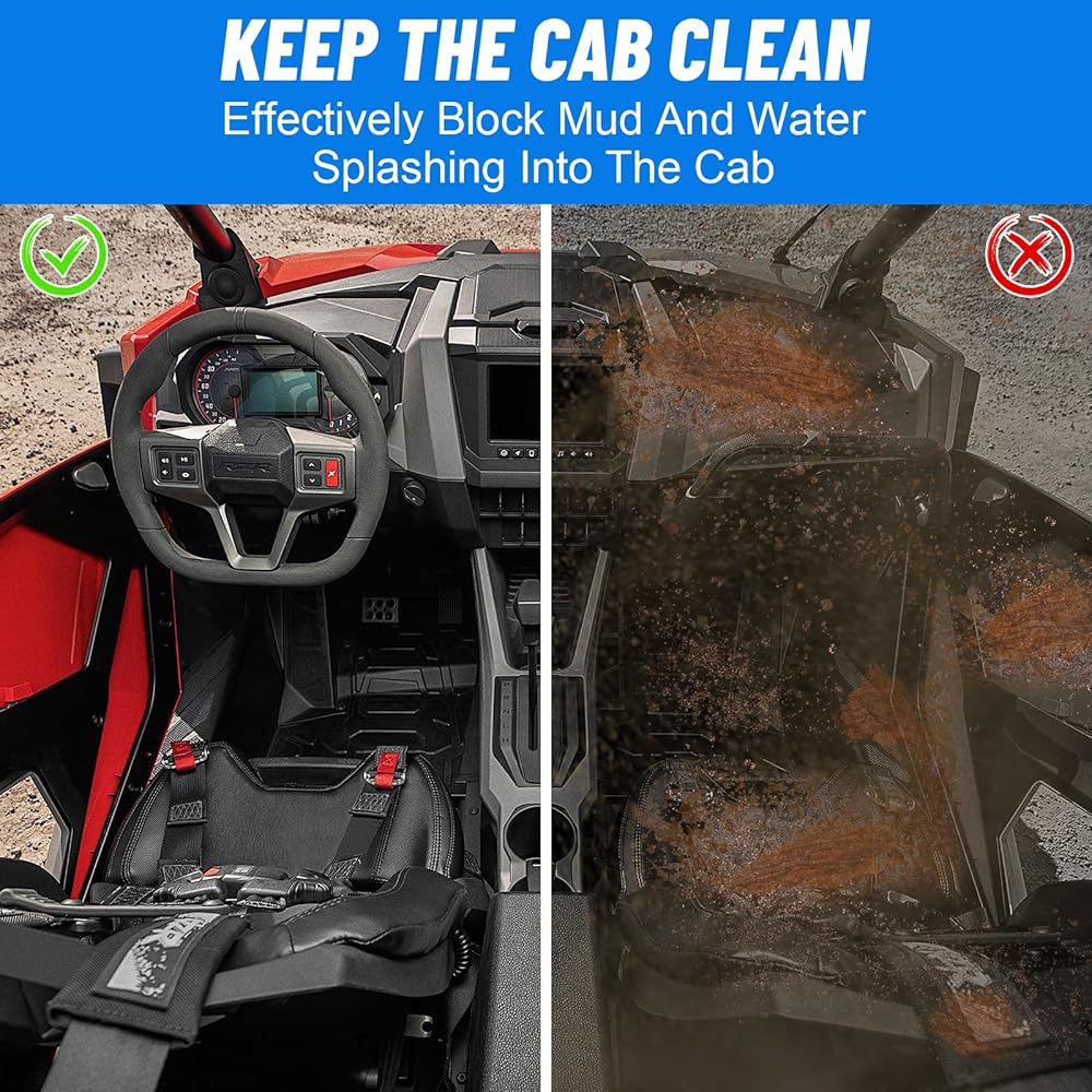 • 【حماية قوية】توفر ملحقات برو إكس بي فيندر حماية قوية أثناء القيادة، وسوف تمنع بشكل فعال الطين أو الرمل أو الحجر أو الفروع أو غيرها من الحطام الطائر من الدخول إلى الكابينة من العجلة الخلفية، مما يجعل قيادتك أكثر أمانًا وراحة.
