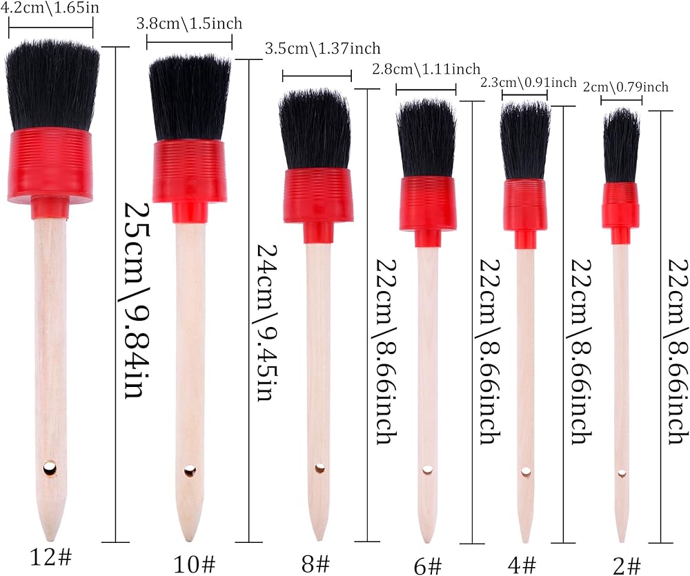 • 6 فرش مختلفة الحجم لتفصيل السيارة، يمكنك اختيار أي واحدة لتناسب احتياجاتك، طول كافٍ لاستكشاف صواميل العروة والوصول إليها بسهولة، أو المساحة الضيقة أو الضيقة.