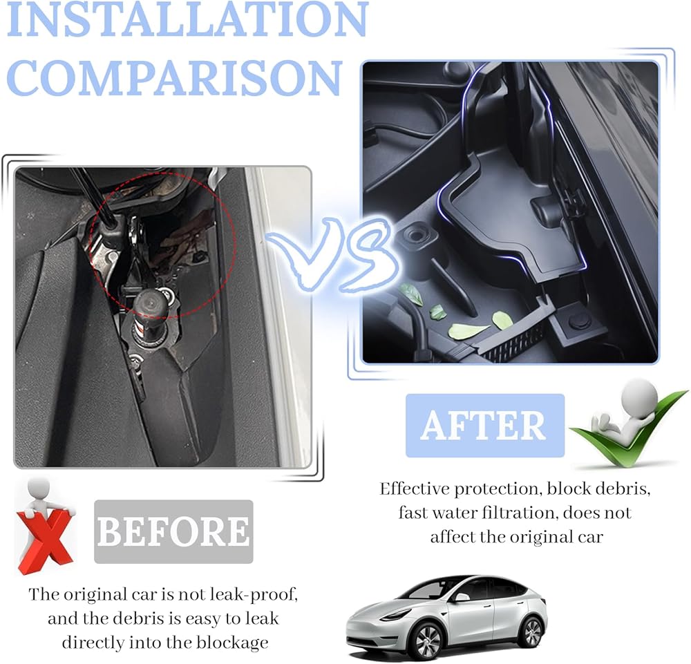 • 【نموذج مطابق】: شبكة قناة المياه متوافقة مع Tesla Y 2021-2024 وتتناسب بسلاسة مع الجزء الداخلي الأصلي من Tesla. لا ينطبق على طراز Tesla 3، يرجى التأكد من مطابقة الطراز قبل الشراء