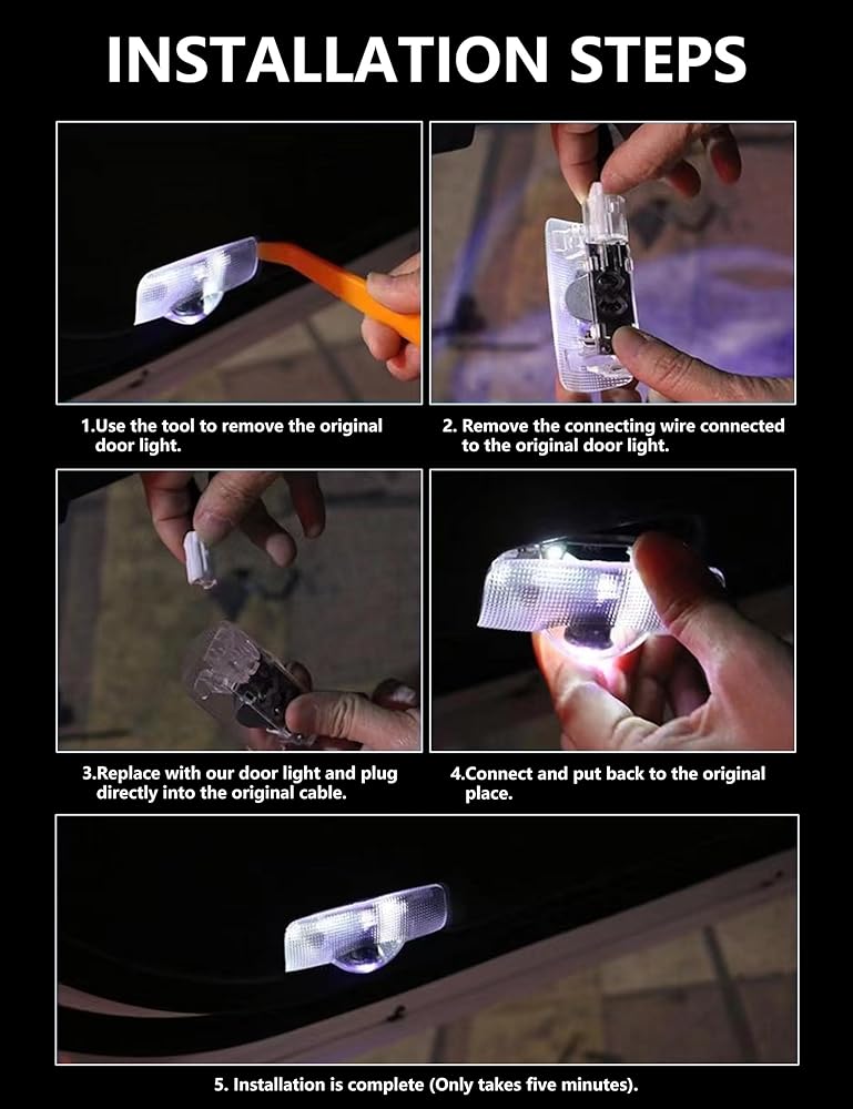 👑【اتجاه الاستخدام】مصباح ترحيب مكون من 4 قطع ومجهز بشكل وثيق بأدوات التثبيت، التثبيت أبسط وأكثر ملاءمة. فقط أخرج الضوء القديم الخاص بك وأدخل هذا المنتج دون تغيير الأسلاك أو ثقب الحفر.
