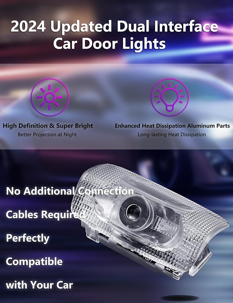 👑 【مظهر رائع 】يعرض جهاز عرض شعار ضوء المصباح الترحيبي للسيارة شعار العلامة التجارية لسيارتك على الأرض عندما يكون باب السيارة مفتوحًا. يبدو ضوء الترحيب بمصباح الليزر رائعًا ويمكن أن يكون هدية لطيفة لأي شخص.