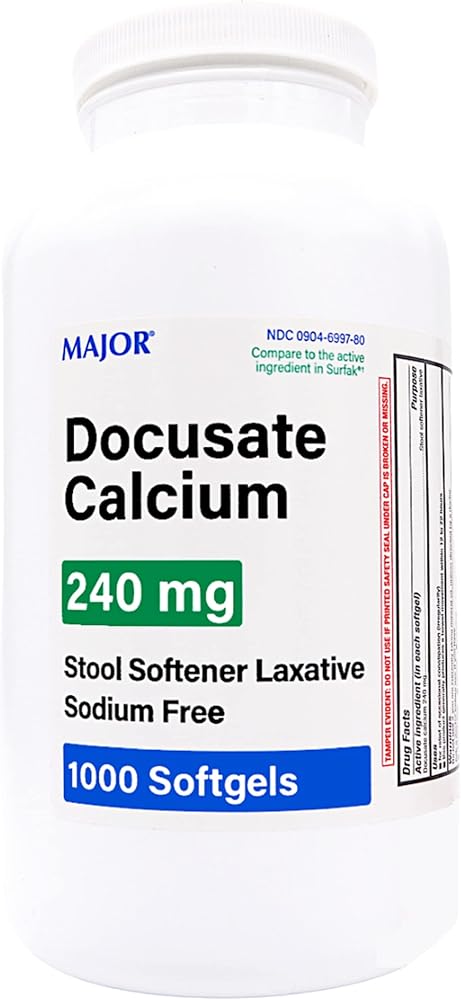 ميجور فارماسيوتيكالز دوكوسات كالسيوم 240 ملجم منعم البراز ملين خالي من الصوديوم - 1000 كبسولة هلامية