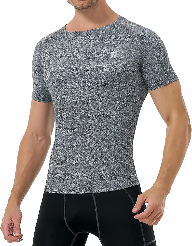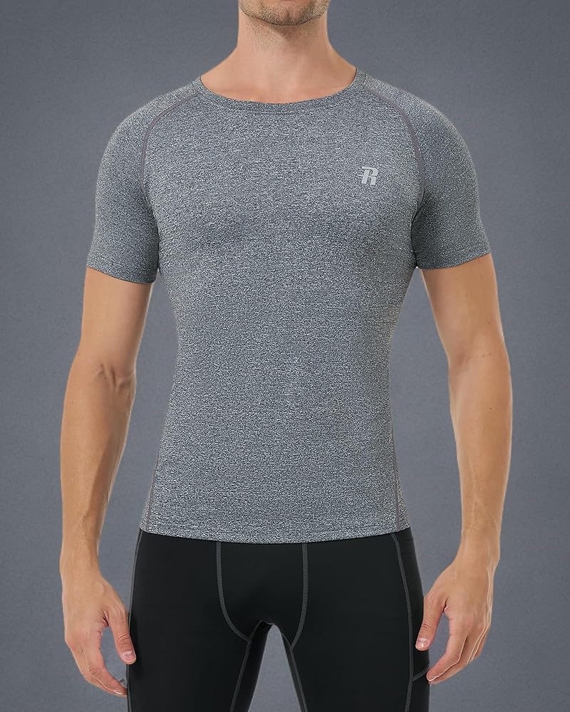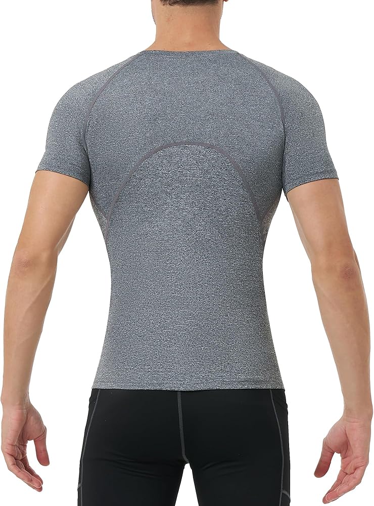 تصميم ضاغط للتمرين: مصنوع من قماش عالي التمدد رباعي الاتجاهات، هذا القميص الضاغط قصير الأكمام للرجال يضمن دعمًا وحماية كبيرين.
