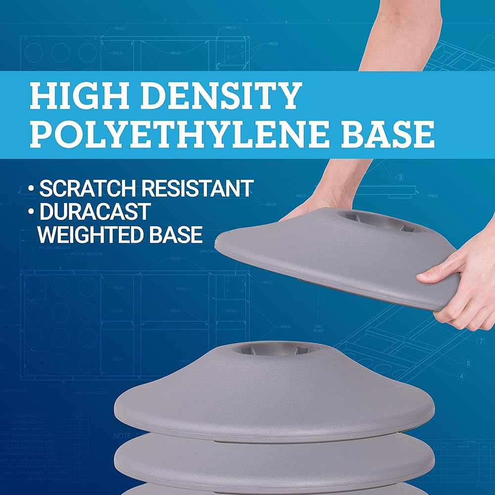 - القاعدة مصنوعة من البولي إيثيلين عالي الكثافة المقاوم للخدش ومملوء بمادة دوراكاست، وهي خرسانة عالية القوة