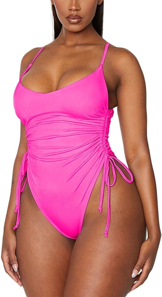 - بدلة سباحة نسائية مثيرة قطعة واحدة للتحكم في البطن مكشكشة مونوكيني صفيق