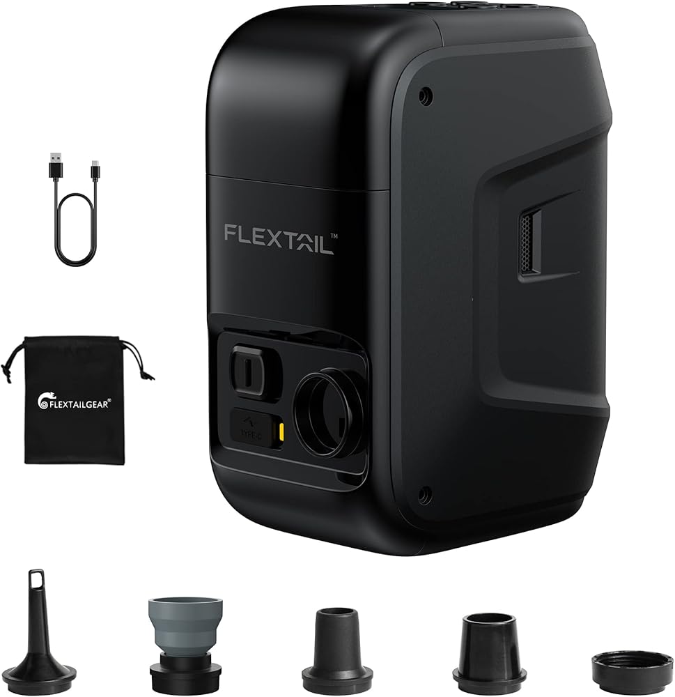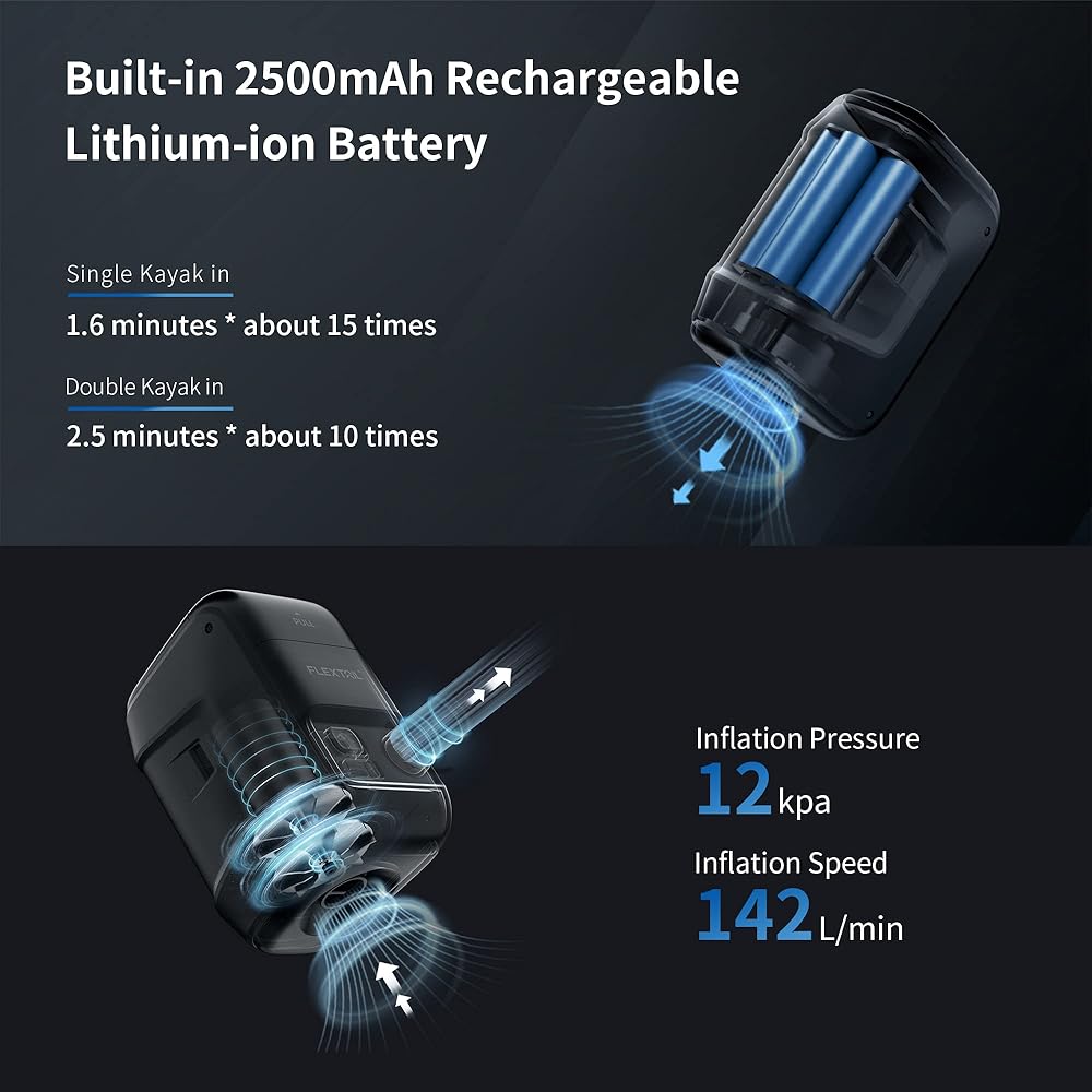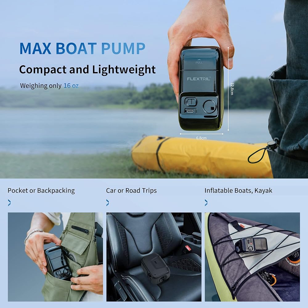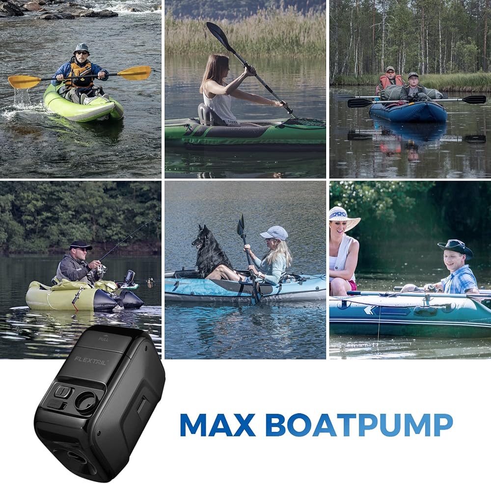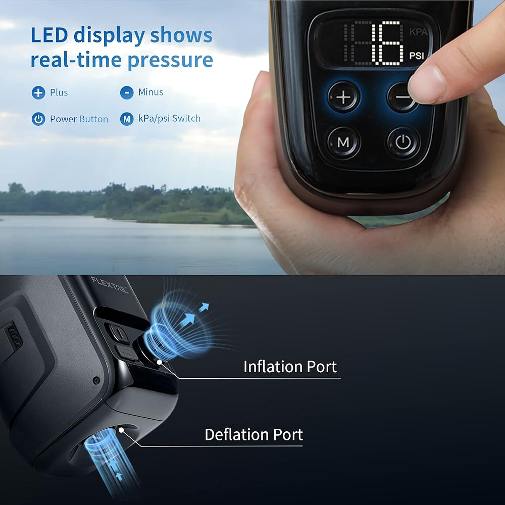 مضخة القارب المحمولة ماكس من فليكستايلجير، مضخة هواء كهربائية قابلة لإعادة الشحن للقوارب القابلة للنفخ، نفخ الهواء مع وظيفة الإيقاف التلقائي، شاشة LED في الوقت الحقيقي للقوارب المطاطية القابلة للنفخ