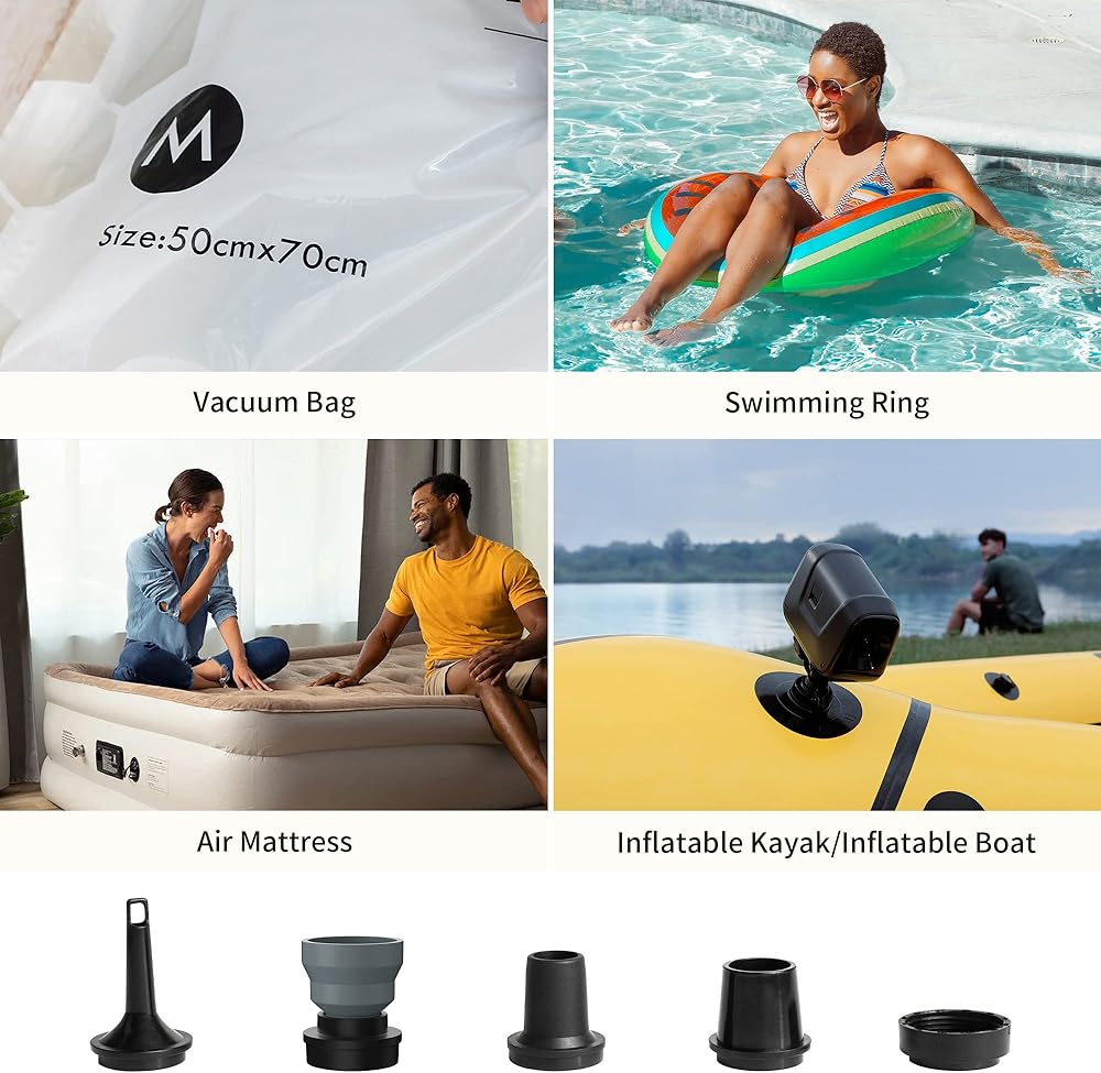 【توافق واسع】: تأتي مضخة القارب القصوى مع 5 فوهات، مما يجعلها متوافقة مع معظم قوارب الكاياك وقيم هواء القوارب القابلة للنفخ. يمكن استخدامه أيضًا للأكياس المفرغة من الهواء، والحلقات العائمة، والأسرة الهوائية، وغيرها من التطبيقات.