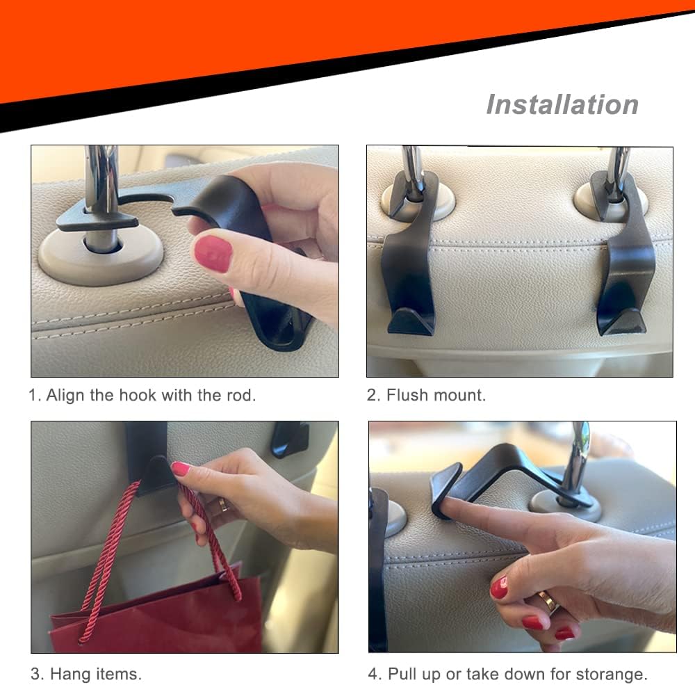 سهلة التركيب: يمكنك بسهولة تثبيت هذه الخطافات دون إزالة مسند الرأس وبدون أدوات إضافية.
