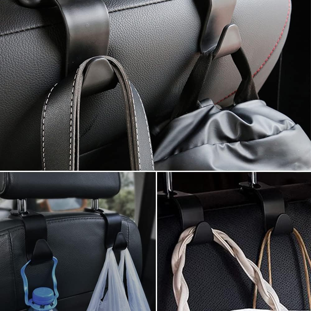 توفير فعال للمساحة: يمكن لخطافات مسند الرأس العالمية هذه تنظيم المقعد الخلفي وحطام الأرضية بطريقة منظمة، وتجنب أكياس البقالة والتسوق من التدحرج على الأرض، كما تمنع حقيبة اليد وحقيبة الطعام من السقوط من المقعد.