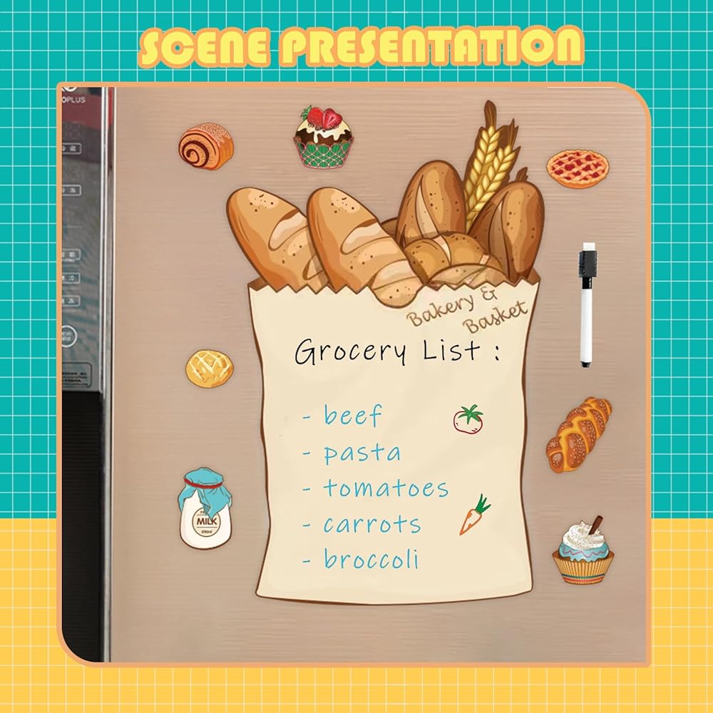 ❤️ تصميم رائع: تتميز هذه السلسلة من اللوحات البيضاء المغناطيسية بتصميمات لطيفة الشكل، مما يضيف لمسة من المرح والشخصية إلى ثلاجتك. مع الحفاظ على وظيفة السبورة البيضاء، يمكن أيضًا استخدامها كديكور جميل على الثلاجة، مما يجعل مطبخك مليئًا بالحيوية.
