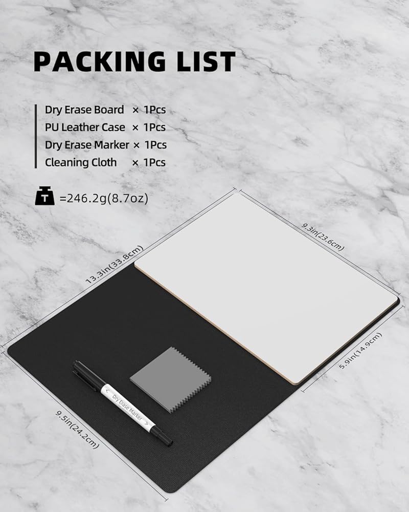 [تشمل العبوة] قطعة واحدة من لوح المسح الجاف، قطعة واحدة من قلم المسح الجاف، قطعة واحدة من قماش التنظيف. يتم توفير ملحقات مختلفة للكتابة ويمكن استخدامها بمجرد استلام الطرد.