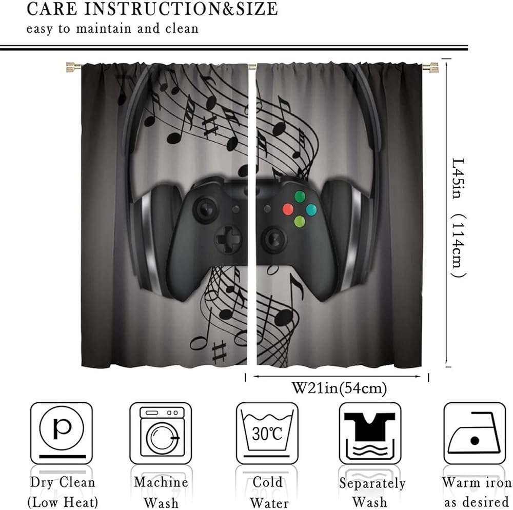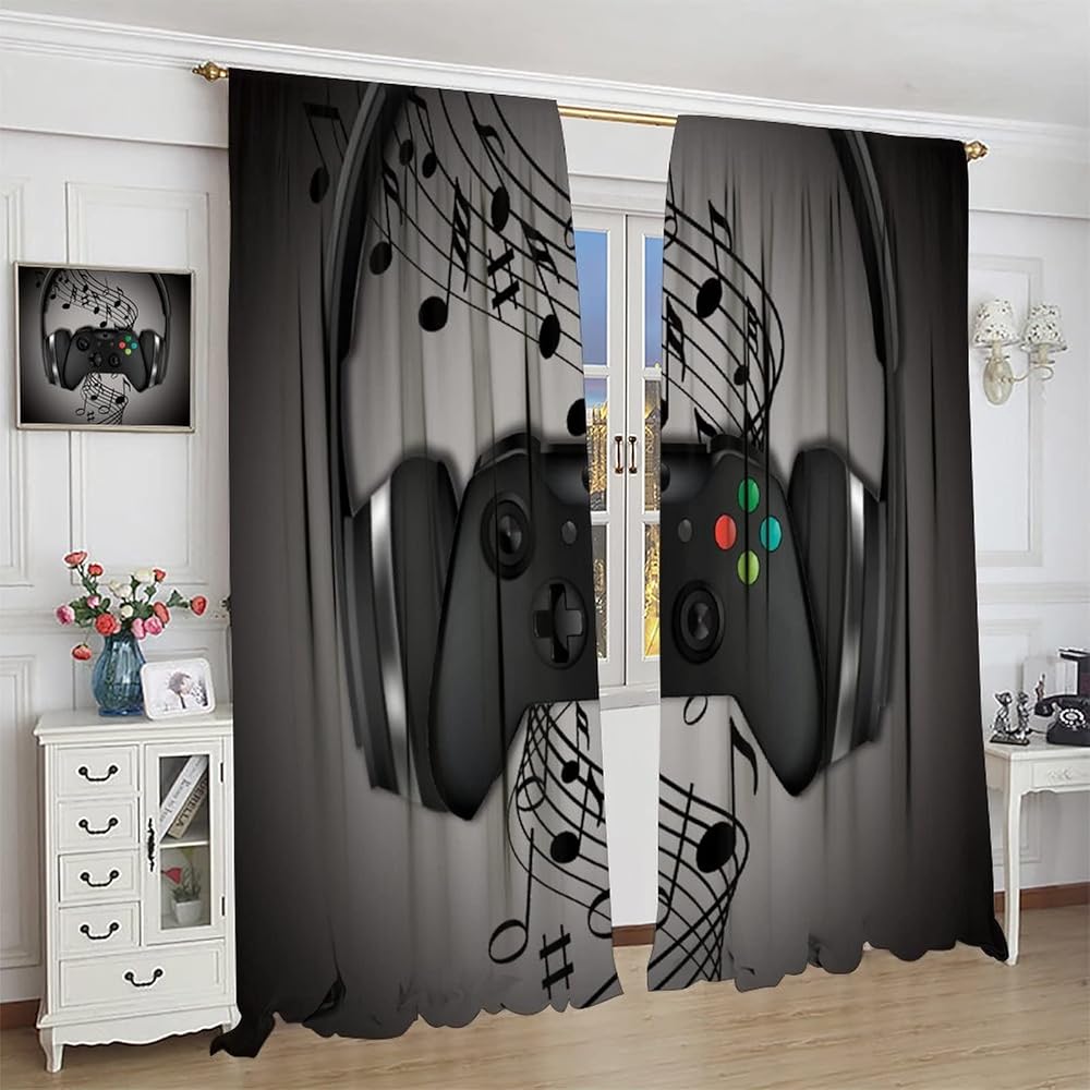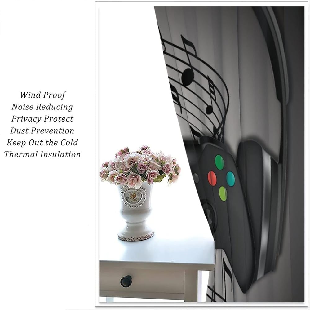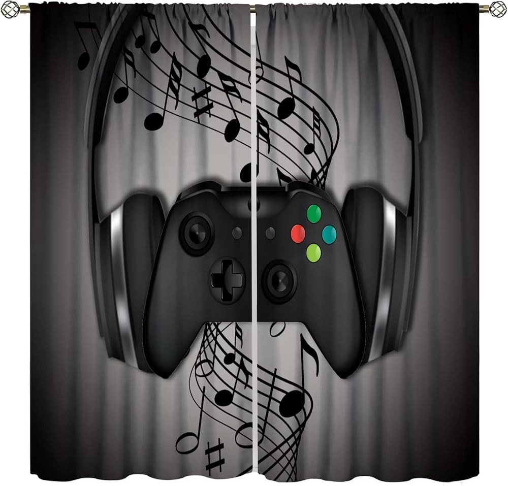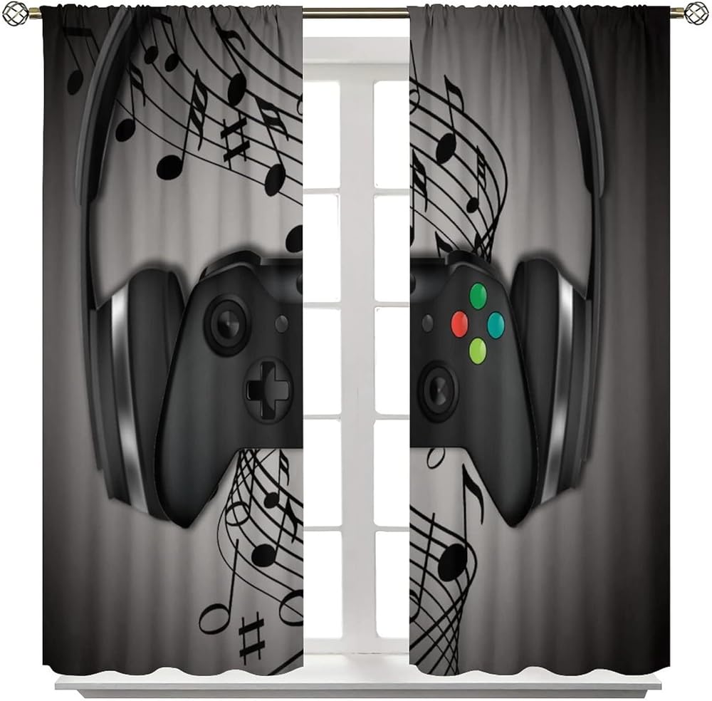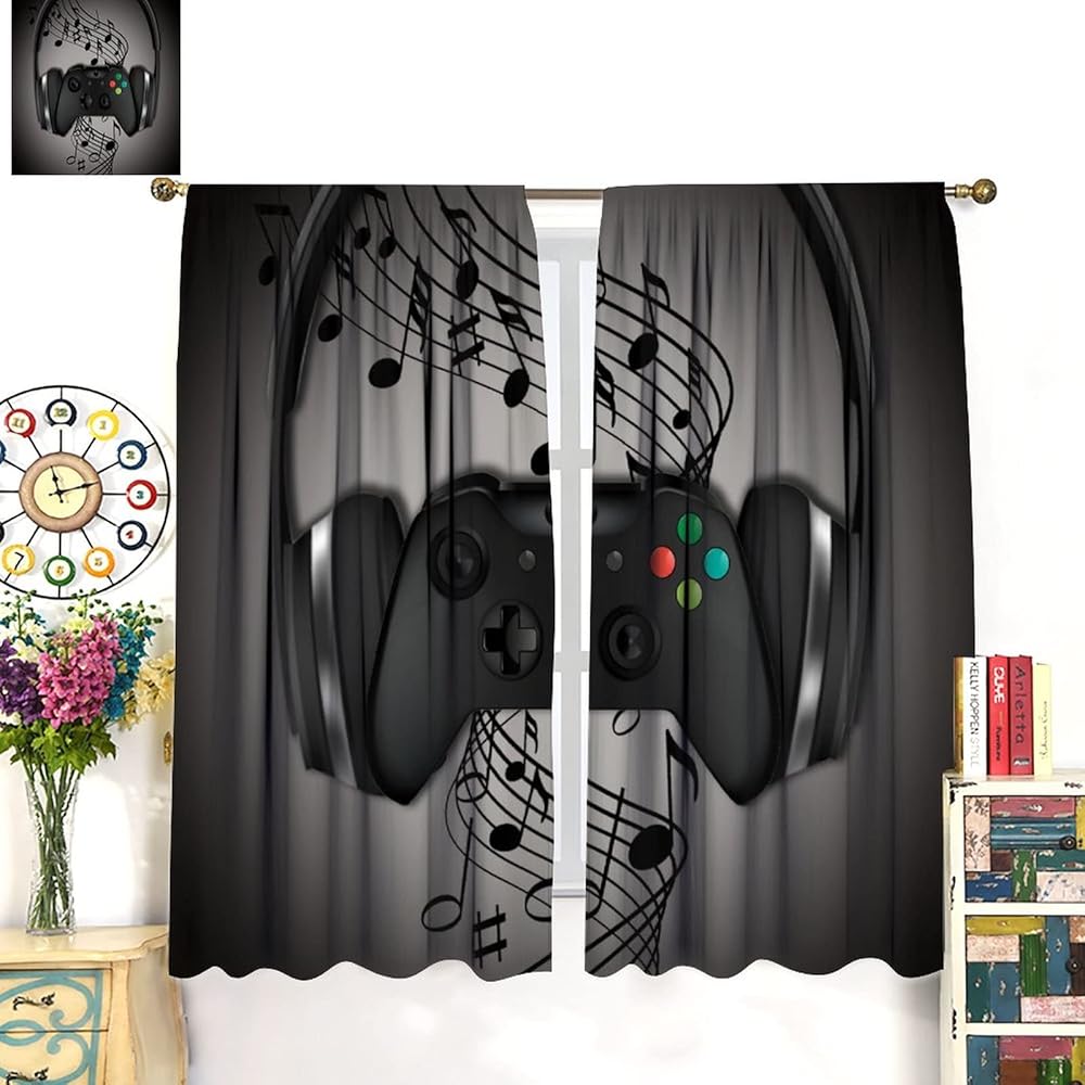 ستائر ألعاب الألعاب باللون الأسود والرمادي وسماعات الرأس الموسيقية بتصميم لوحة الألعاب ستارة نافذة للأولاد والأطفال فيديو رائع لديكور غرفة الألعاب وستائر اللعب الرجعية وستائر نافذة وحدة التحكم في الألعاب مقاس 42 × 45 بوصة