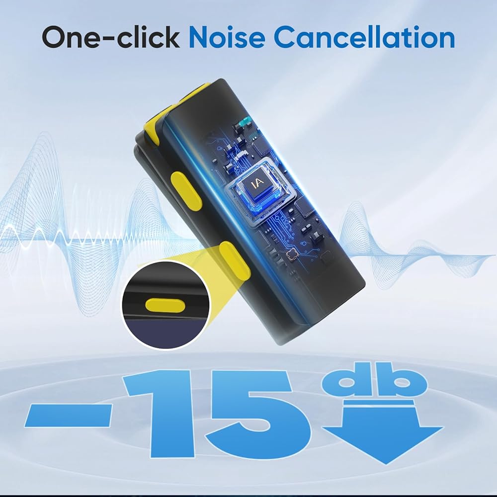 التحكم الذكي في إلغاء الضوضاء: تم تجهيز الميكروفون اللاسلكي الخاص بنا بشريحة ذكية لتقليل الضوضاء بدرجة احترافية، والتي تدعم الزر الأصفر بنقرة واحدة لتشغيل/إيقاف وظيفة تقليل الضوضاء على جهاز الإرسال. تقوم وحدة تقليل الضوضاء الذكية بخوارزمية الذكاء الاصطناعي بتصفية جميع أنواع الضوضاء بدقة وتوفر التعرف الفعال على الصوت الأصلي. وتسجيل واضح في البيئات الصاخبة.