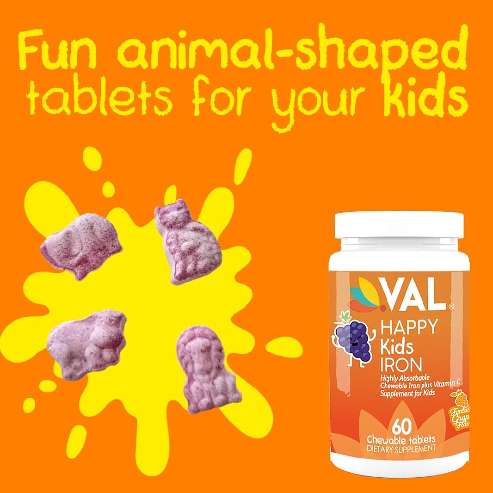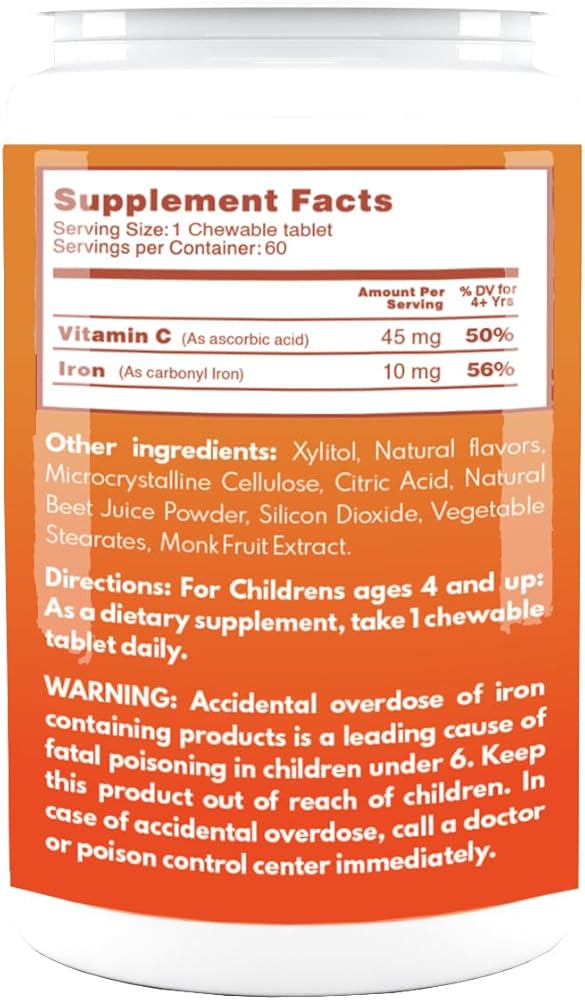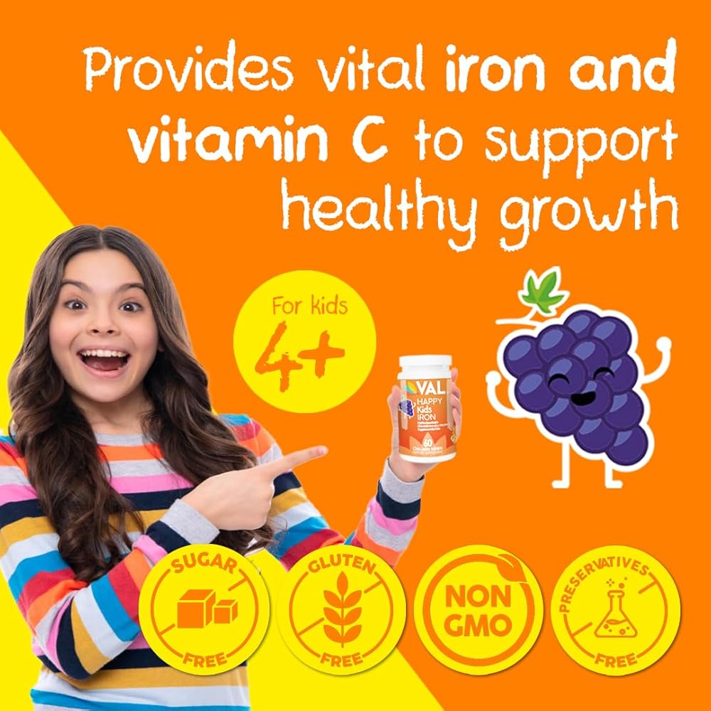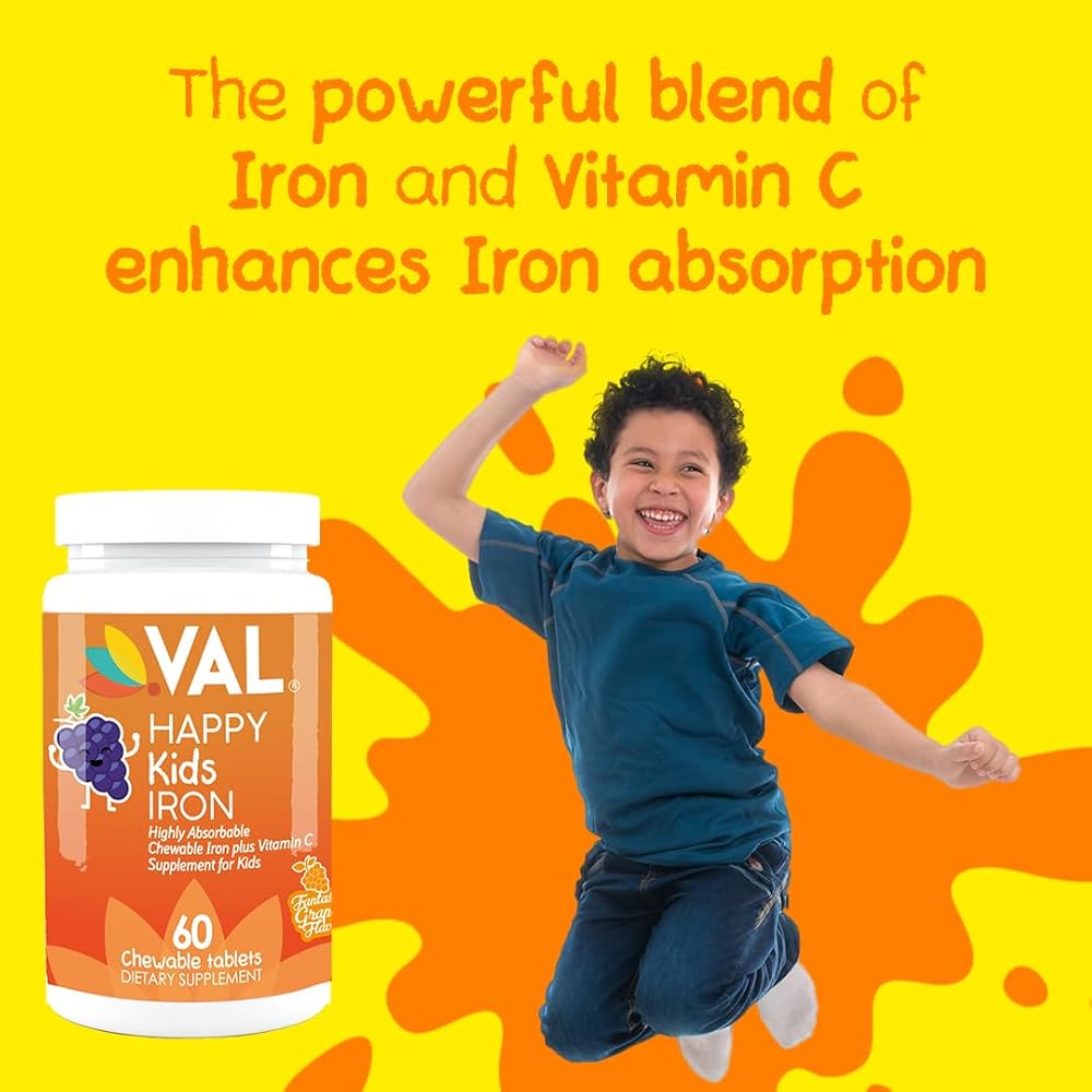 الدعم الغذائي الأساسي: يوفر مكمل الحديد + فيتامين C الخاص بنا من Happy Kids الحديد الحيوي وفيتامين C لدعم النمو والتطور الصحي للأطفال من سن 4 سنوات فما فوق.
