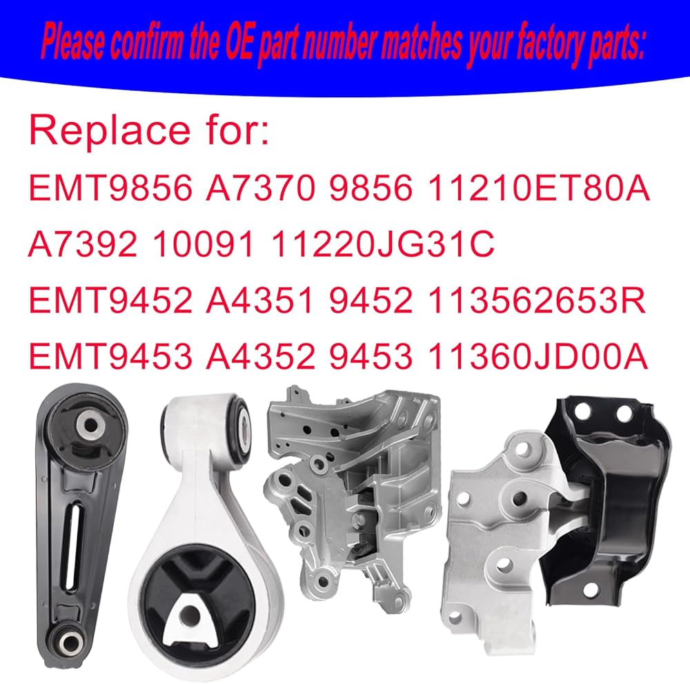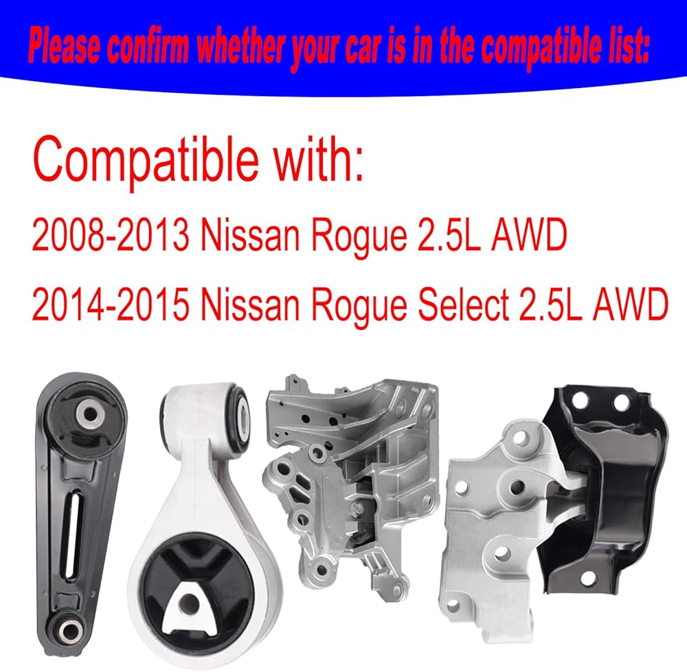 متوافق مع: مجموعة تركيب محرك المحرك هذه متوافقة مع Nissan 2008-2013 Rogue 2.5L FWD 2014-2015 Rogue Select 2.5L FWD 2007-2012 Sentra 2.5L CVT