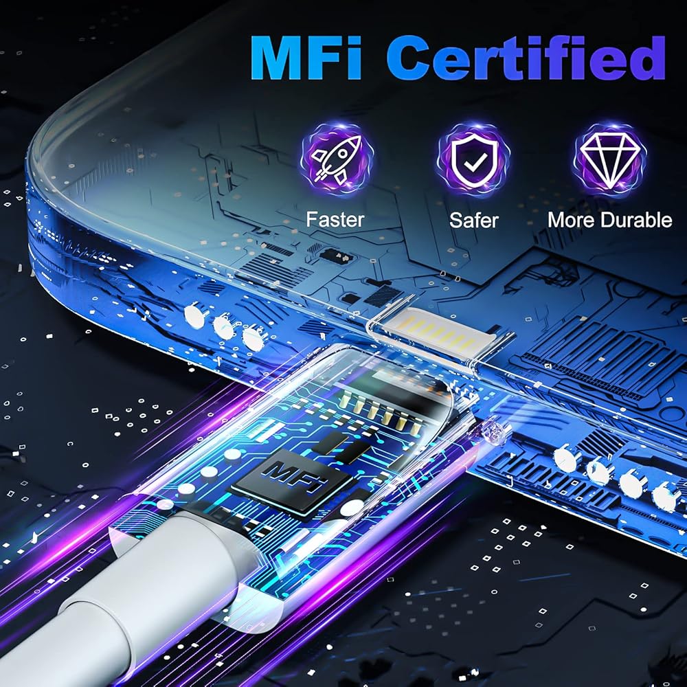 شاحن iPhone معتمد من MFI: لقد أكمل كابل Lightning شهادة MFI، مما يضمن التوافق المثالي مع معظم أجهزة Apple. تم تصميم الشحن السريع لشاحن iPhone باستخدام شريحة ذكية أصلية تتيح الشحن الآمن بأسرع سرعة ممكنة دون أي رسائل تحذيرية.