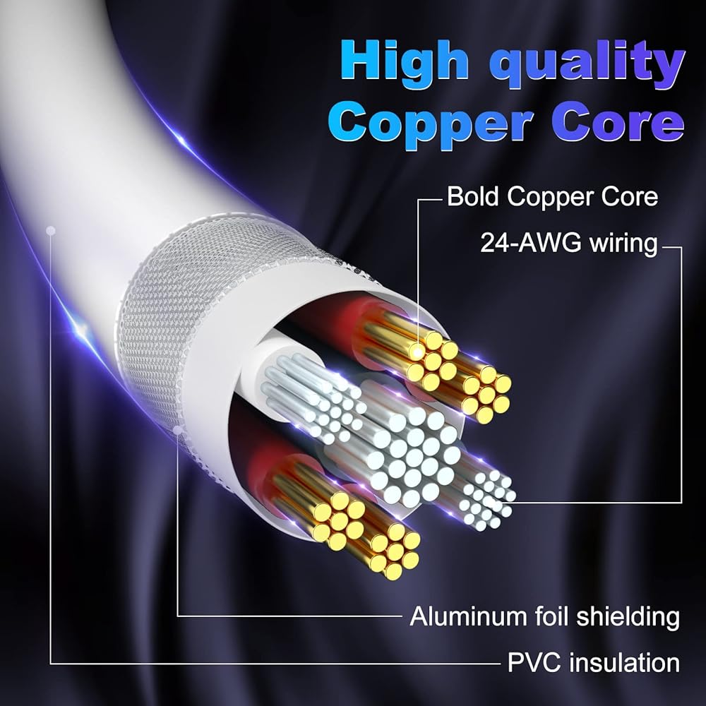 【كابل شاحن iPhone متين】 يتكون شاحن Apple الخاص بنا من سلك نحاسي عالي الجودة مع سطح PVC ممتاز لتجنب التشابك، وقد تم اختباره ليتحمل ما لا يقل عن 15000+ اختبار عمر الانحناء وهو أكثر متانة بثلاث مرات من سلك شاحن iPhone العادي. .