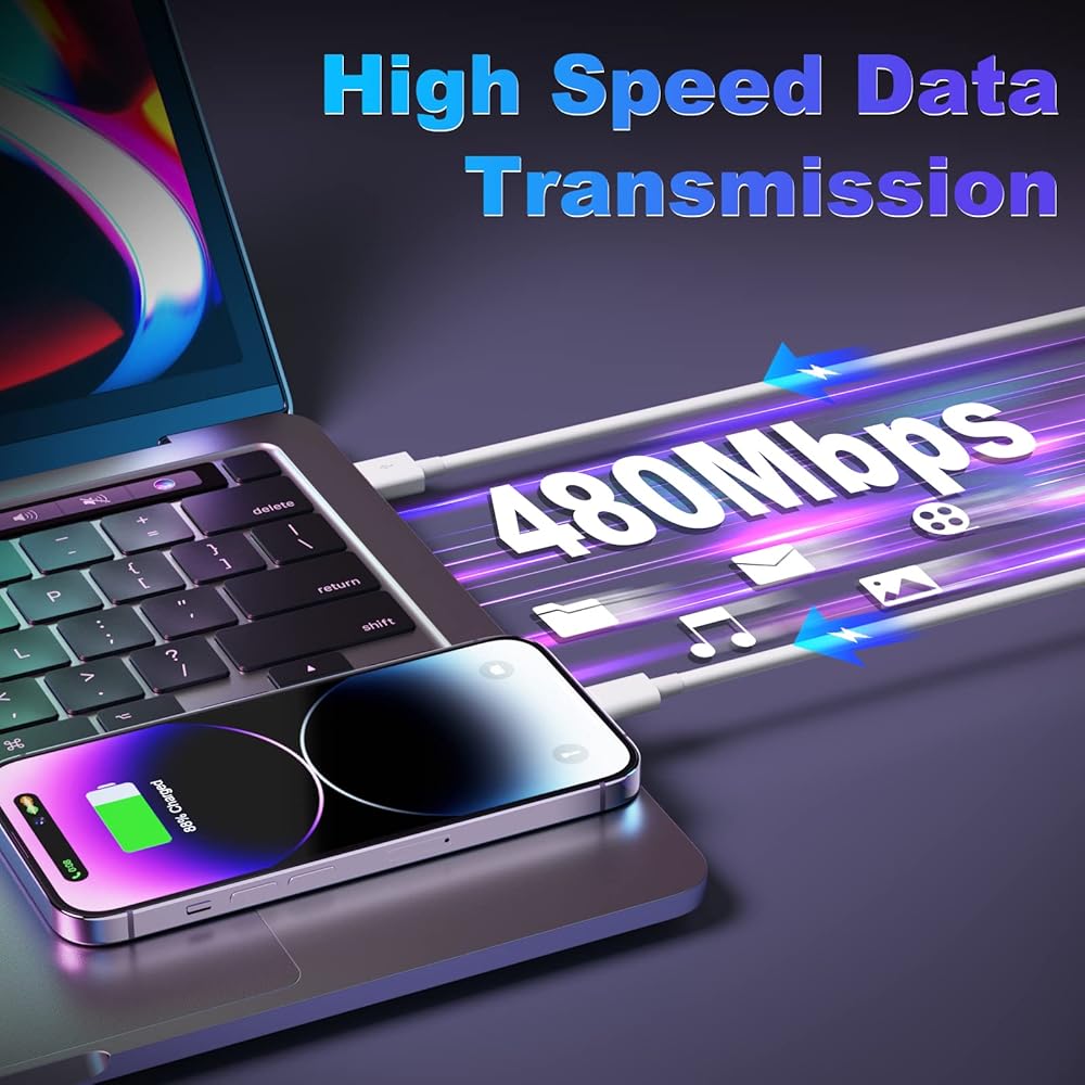 شاحن iPhone سريع آمن: كابل شحن iPhone هذا مصنوع من سلك نحاسي رباعي النواة ممتاز ليوفر لك الجهاز كفاءة شحن سريعة 2.4 أمبير ونقل بيانات عالي السرعة بسرعة 480 ميجابت في الثانية مع تيار أكثر أمانًا. يمنع بشكل فعال ارتفاع درجة الحرارة والشحن الزائد أثناء الشحن