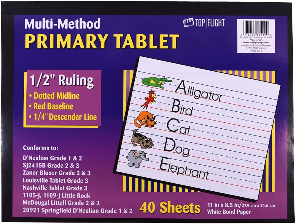 كمبيوتر لوحي أساسي من الدرجة الثالثة متعدد الطرق من Top Flight، مسطرة 1/2 بوصة، ورق سندات، 11 × 8.5 بوصة، 40 ورقة (56419)، أبيض