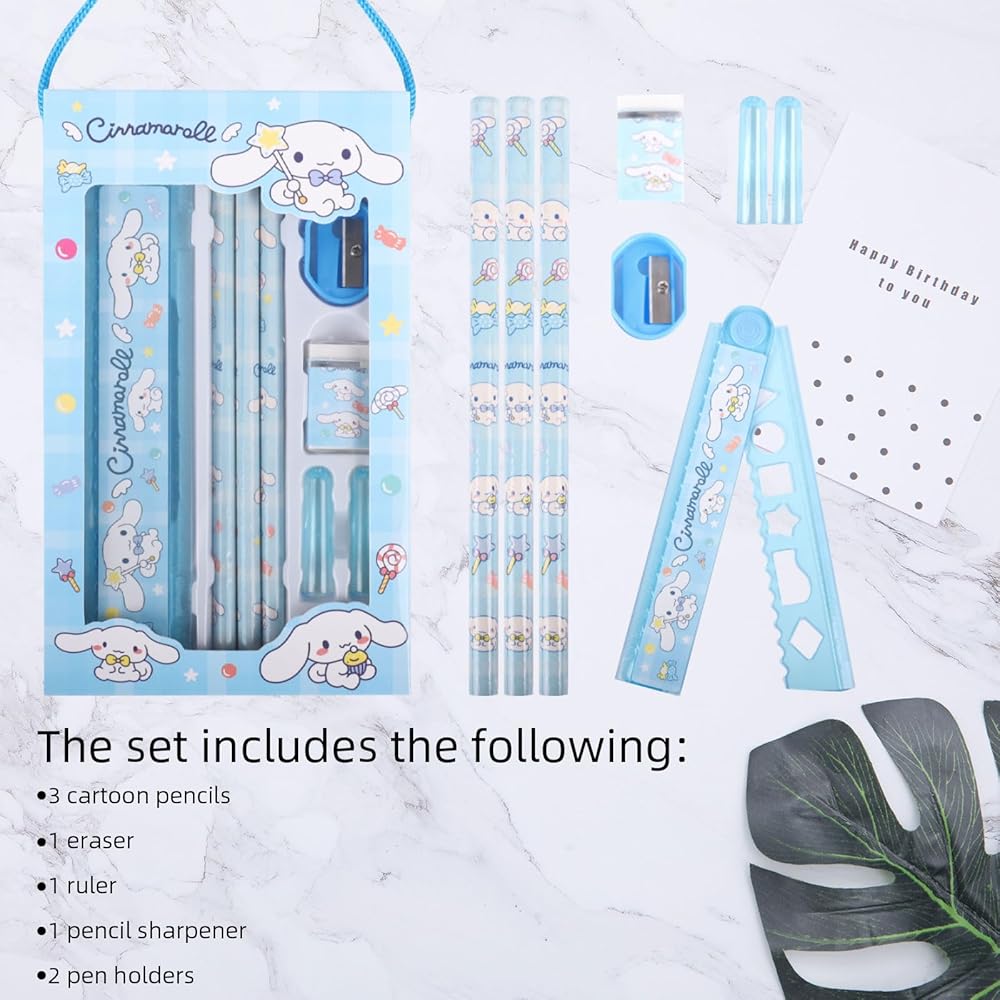 مستلزمات مدرسية للرسوم المتحركة: تتضمن هذه اللوازم المدرسية اللطيفة مسطرة واحدة لطيفة، ومبراة قلم رصاص واحدة، وممحاة لطيفة، و3 أقلام رصاص أنيمي وغطاءين من قلم الرصاص. تأتي هذه المادة التعليمية في علبة هدايا رائعة، والتي تحتوي أيضًا على شخصيات أنمي لطيفة مطبوعة عليها. إذا كان طلابك أو ابنتك يحبون سلسلة الرسوم المتحركة هذه، فستكون هدية مفاجئة جدًا لهم.