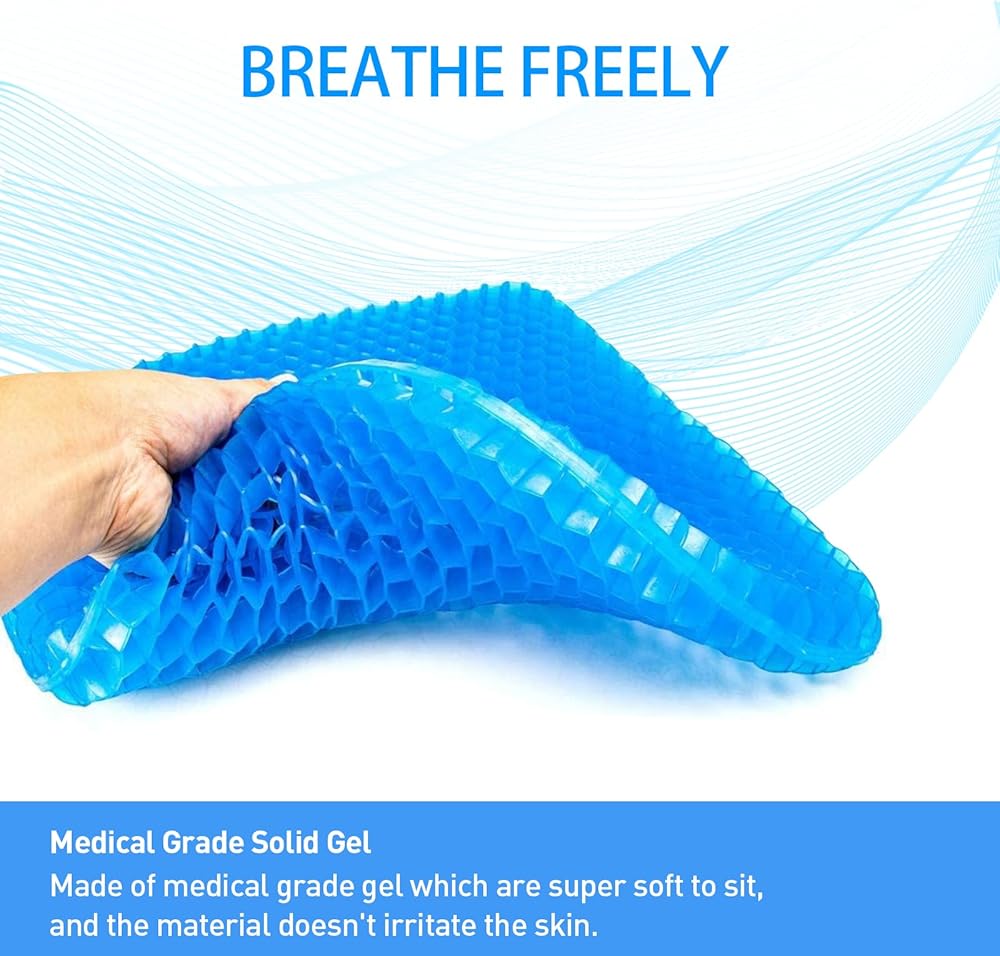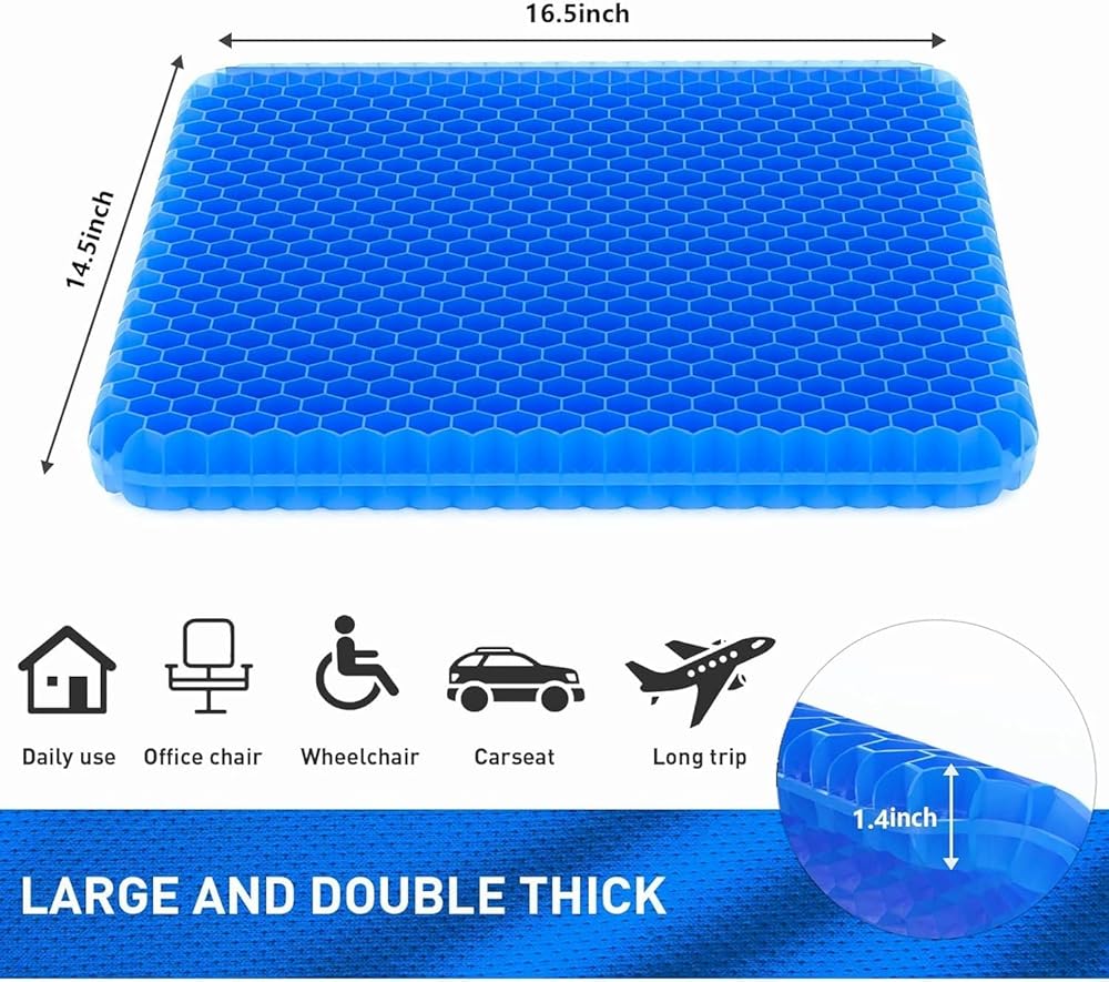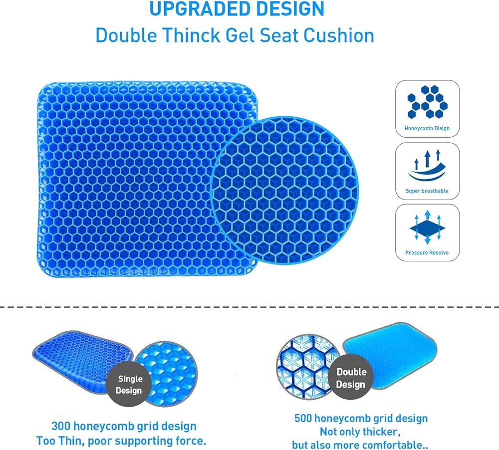 وسادة مقعد جل متعددة الوظائف. باستخدام مادة هلامية ناعمة ومرنة، تتم ترقية الهيكل إلى طبقة مزدوجة أكثر سمكًا، وهي مرنة للغاية ويمكن ضغطها مرة أخرى إلى شكلها الأصلي مباشرة بعد التمدد. بالإضافة إلى ذلك، يحافظ جل هيكل قرص العسل والقماش المسامي على تدفق الهواء، مما يحافظ على راحة مقعدك طوال اليوم.