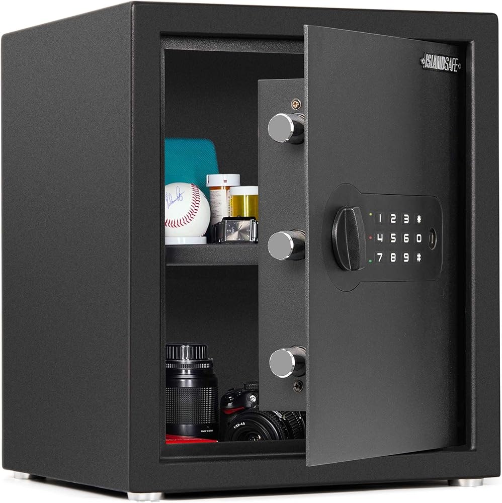 صندوق قفل آمن وآمن، صندوق نقود صغير، آمن للمستندات مع قفل لوحة مفاتيح رقمية للمنزل والمكتب والفندق والأعمال التجارية والمجوهرات وتخزين الاستخدام النقدي، رف قابل للإزالة (1.0 قدم مكعب أسود)