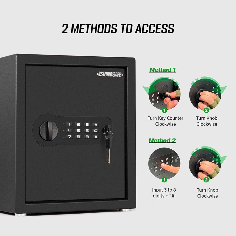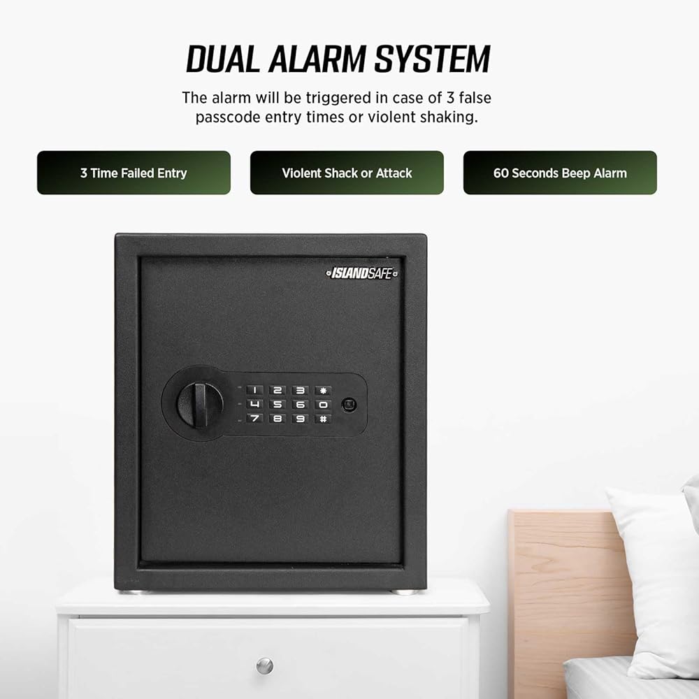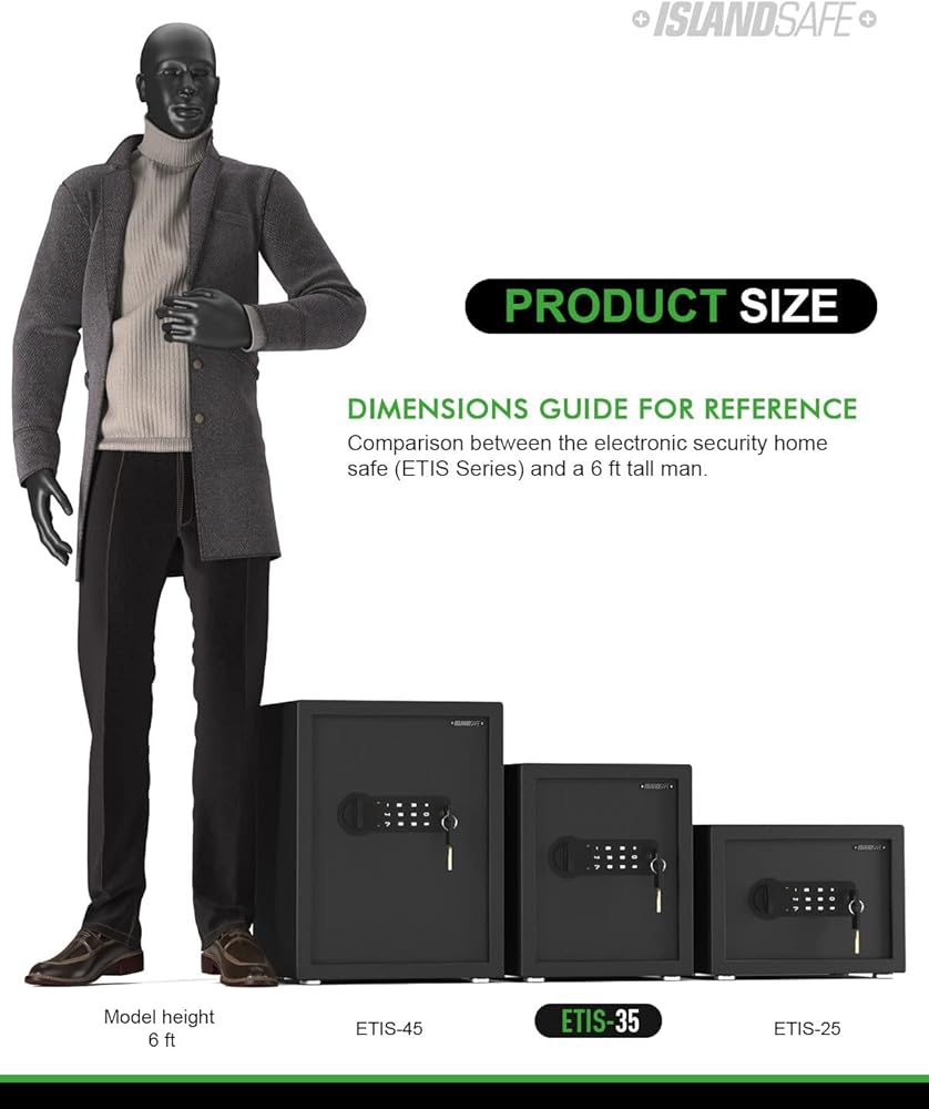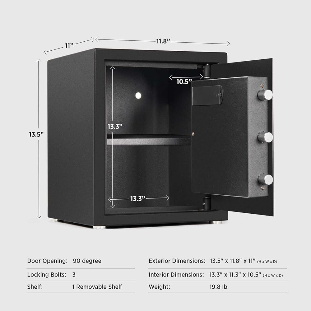 【سعة صندوق الأمان】1.0 قدم مكعب. الحجم الخارجي للمنتج: 13.8 بوصة × 11.8 بوصة × 11 بوصة (الارتفاع × العرض × العمق)، الحجم الداخلي 13.3 بوصة × 11.3 بوصة × 10.5 بوصة (الارتفاع × العرض × العمق). يوفر صندوق الأمان الرقمي سعة كافية لمقتنياتك الثمينة والنقود والمجوهرات والمسدسات والمزيد.